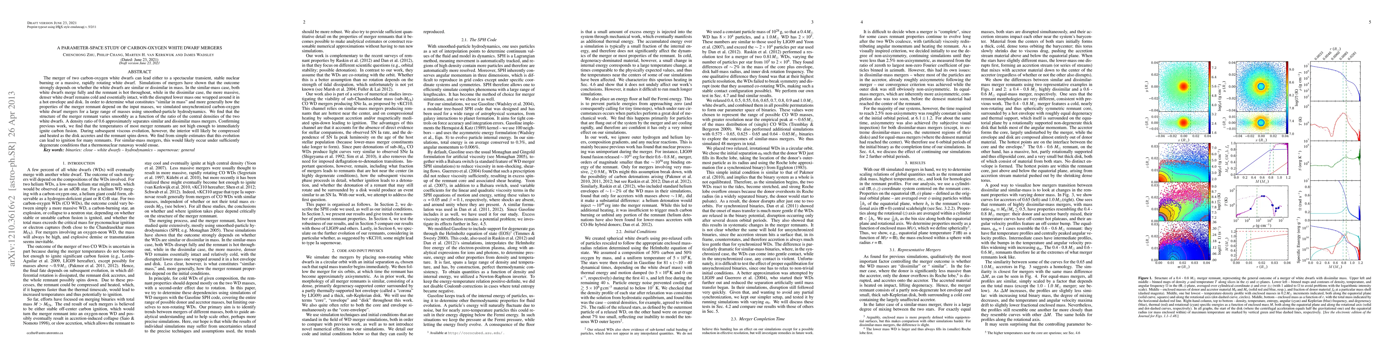 This study investigates the outcomes of carbon-oxygen white dwarf mergers across a wide range of mass ratios using smoothed-particle hydrodynamics. It finds that the merger remnant's structure varies smoothly with the central densities of the merging white dwarfs, with a density ratio of 0.6 distinguishing similar from dissimilar mass mergers, and that ignition of carbon fusion is likely during viscous evolution.