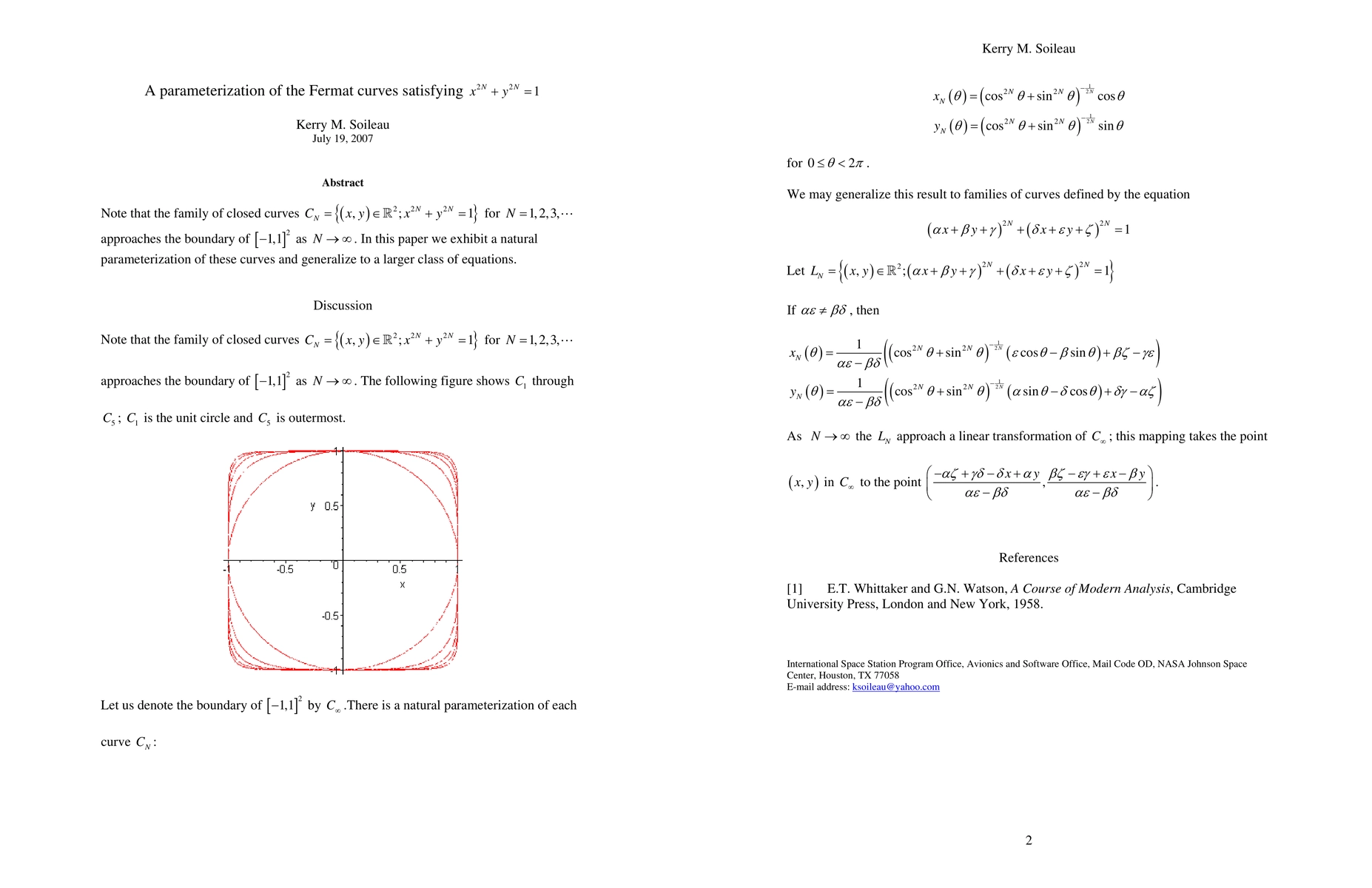 Note that the family of closed curves C_N={(x,y)\in R^2;x^(2N)+y^(2N)=1} for N=1,2,3,... approaches the boundary of [-1,1]^2 as N \to \infty. In this paper we exhibit a natural parameterization of these curves and generalize to a larger class of equations.