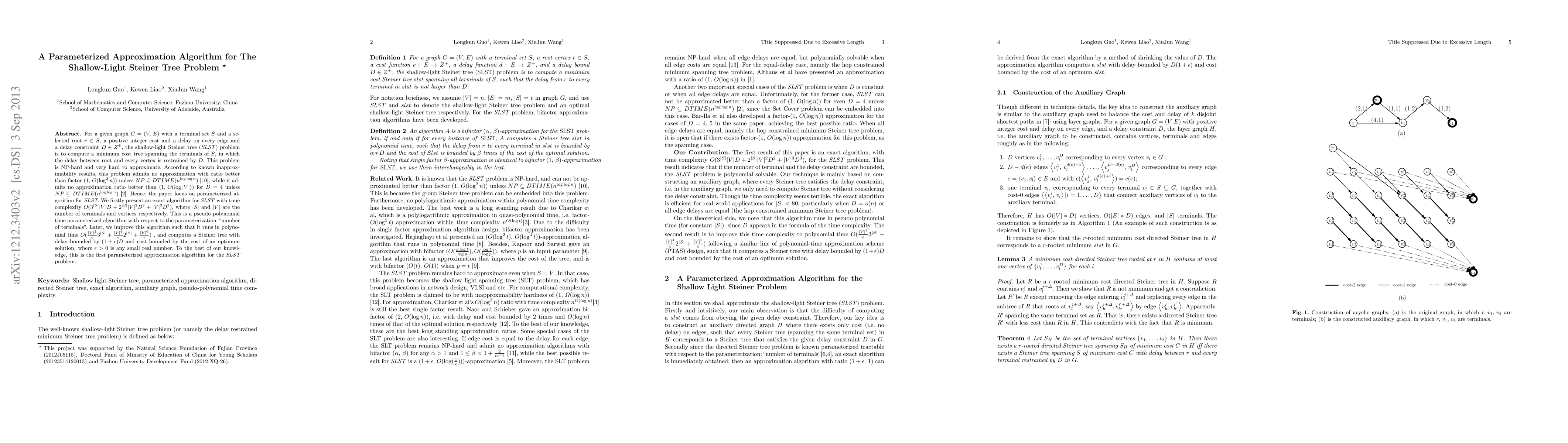 This paper presents a parameterized approximation algorithm for the Shallow-Light Steiner Tree Problem, achieving polynomial time complexity with a bounded delay and cost, improving upon existing results.