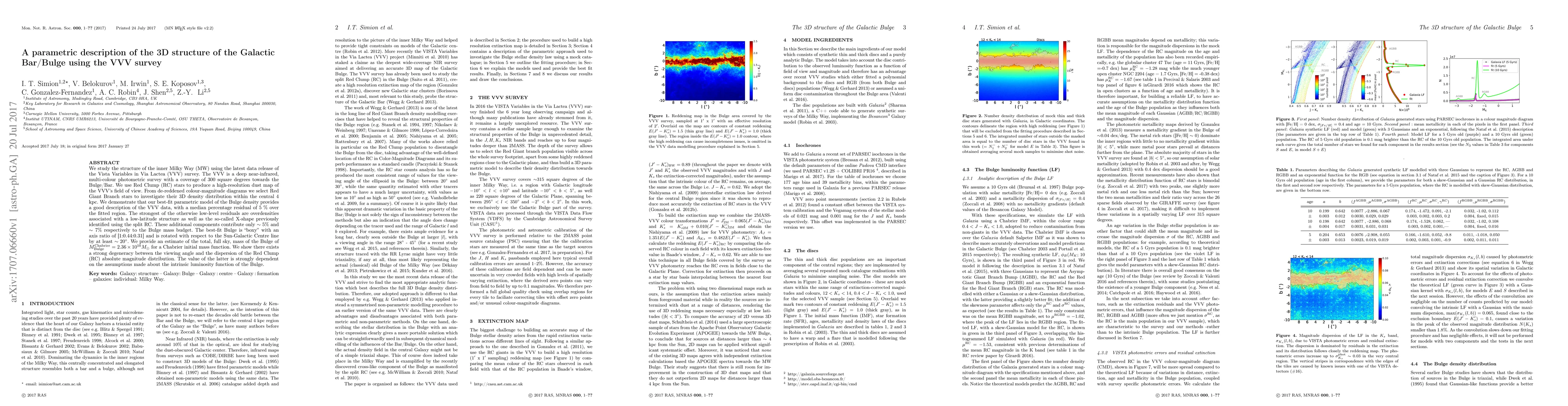 This paper uses VVV survey data to model the 3D structure of the Milky Way's Bulge/Bar, finding a best-fit 'boxy' Bulge with an axis ratio of [1:0.44:0.31] and a total mass estimate of $2.36 \times 10^{10} M_{\odot}$. The model shows a good fit to the data, with minor residuals attributed to low-latitude structures and the X-shape.