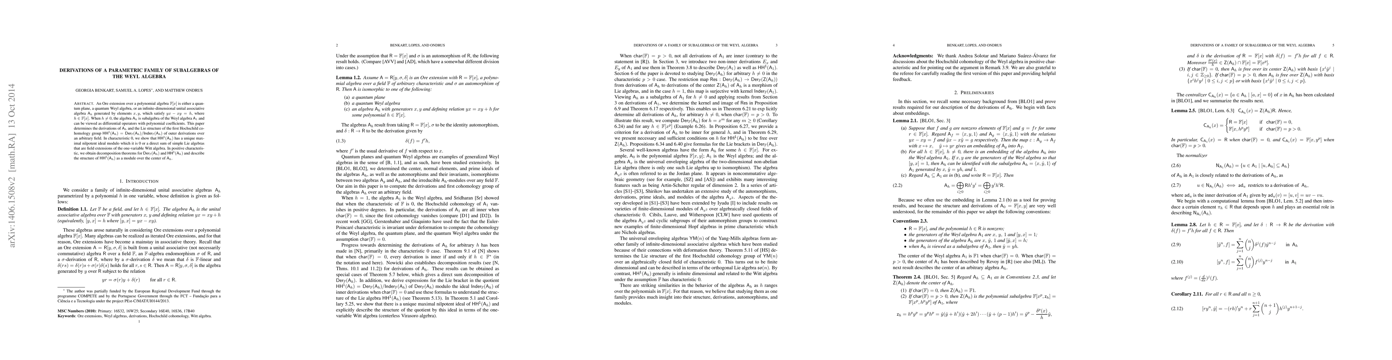This paper investigates the derivations of a parametric family of subalgebras of the Weyl algebra, specifically the algebra A_h, which is an Ore extension over a polynomial algebra. The authors determine the derivations of A_h over an arbitrary field, building on previous work that analyzed its structure, automorphisms, and modules.