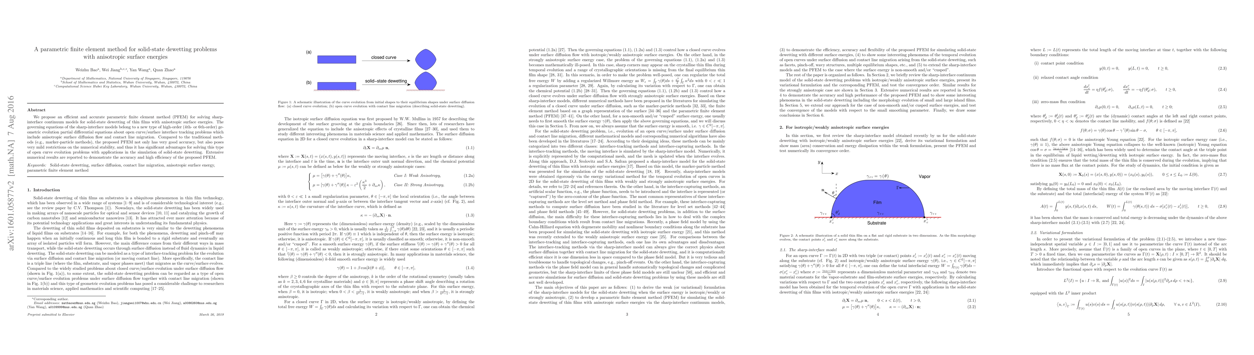 This paper introduces a parametric finite element method for accurately modeling solid-state dewetting of thin films with anisotropic surface energies, solving high-order geometric evolution PDEs. The proposed method offers significant advantages over traditional methods in terms of accuracy and numerical stability.