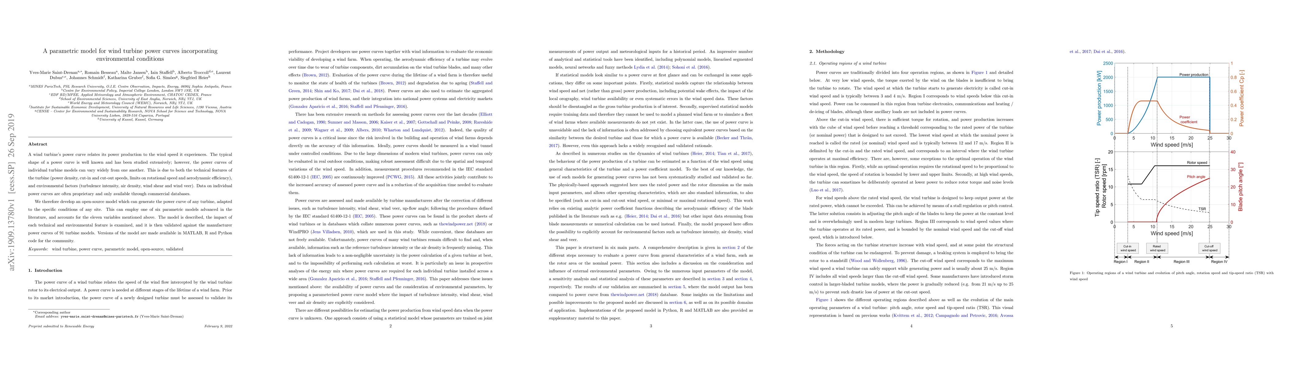 This paper develops an open-source parametric model to generate wind turbine power curves, incorporating both technical features and environmental conditions. The model is validated against manufacturer data for 91 turbine models and is available in MATLAB, R, and Python.
