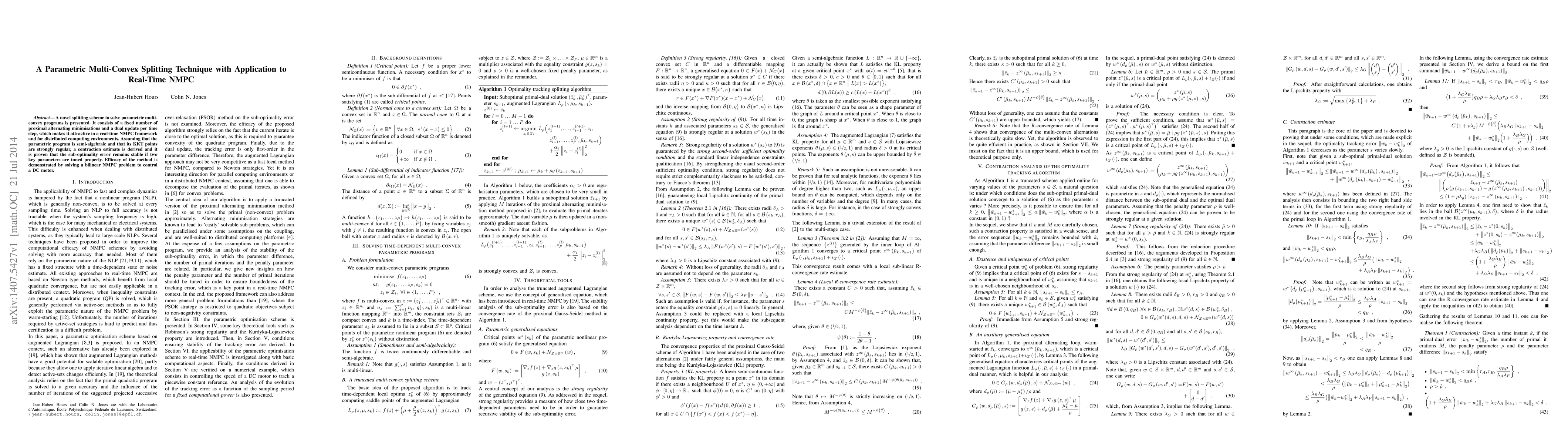 A novel splitting scheme to solve parametric multiconvex programs is presented. It consists of a fixed number of proximal alternating minimisations and a dual update per time step, which makes it attractive in a real-time Nonlinear Model Predictive Control (NMPC) framework and for distributed computing environments. Assuming that the parametric program is semi-algebraic and that its KKT points are strongly regular, a contraction estimate is derived and it is proven that the sub-optimality error remains stable if two key parameters are tuned properly. Efficacy of the method is demonstrated by solving a bilinear NMPC problem to control a DC motor.