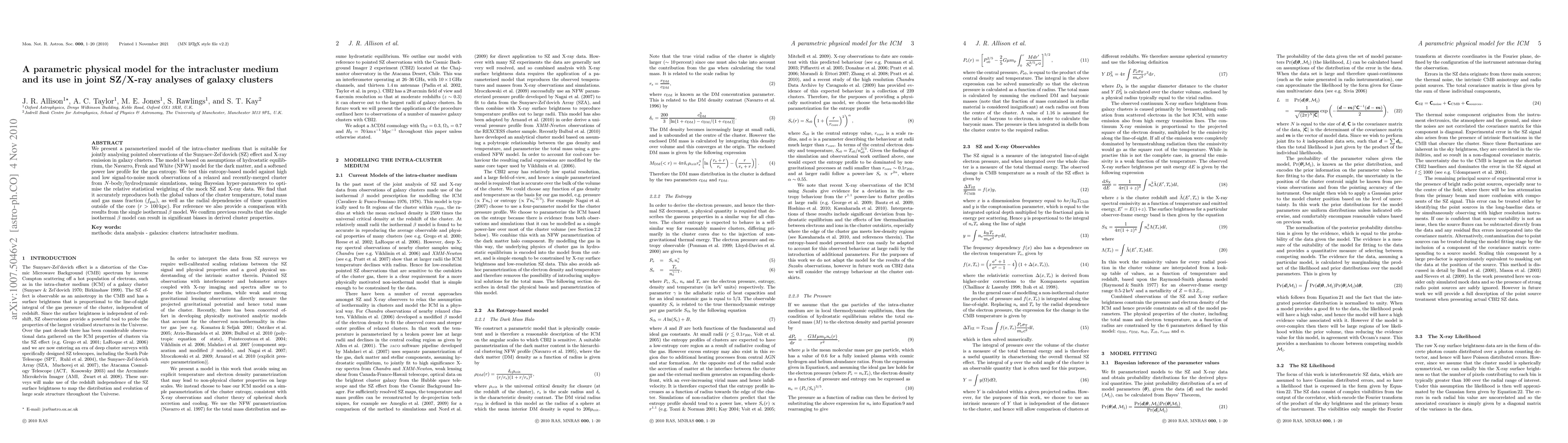 We present a parameterized model of the intra-cluster medium that is suitable for jointly analysing pointed observations of the Sunyaev-Zel'dovich (SZ) effect and X-ray emission in galaxy clusters. The model is based on assumptions of hydrostatic equilibrium, the Navarro, Frenk and White (NFW) model for the dark matter, and a softened power law profile for the gas entropy. We test this entropy-based model against high and low signal-to-noise mock observations of a relaxed and recently-merged cluster from N-body/hydrodynamic simulations, using Bayesian hyper-parameters to optimise the relative statistical weighting of the mock SZ and X-ray data. We find that it accurately reproduces both the global values of the cluster temperature, total mass and gas mass fraction (fgas), as well as the radial dependencies of these quantities outside of the core (r > kpc). For reference we also provide a comparison with results from the single isothermal beta model. We confirm previous results that the single isothermal beta model can result in significant biases in derived cluster properties.