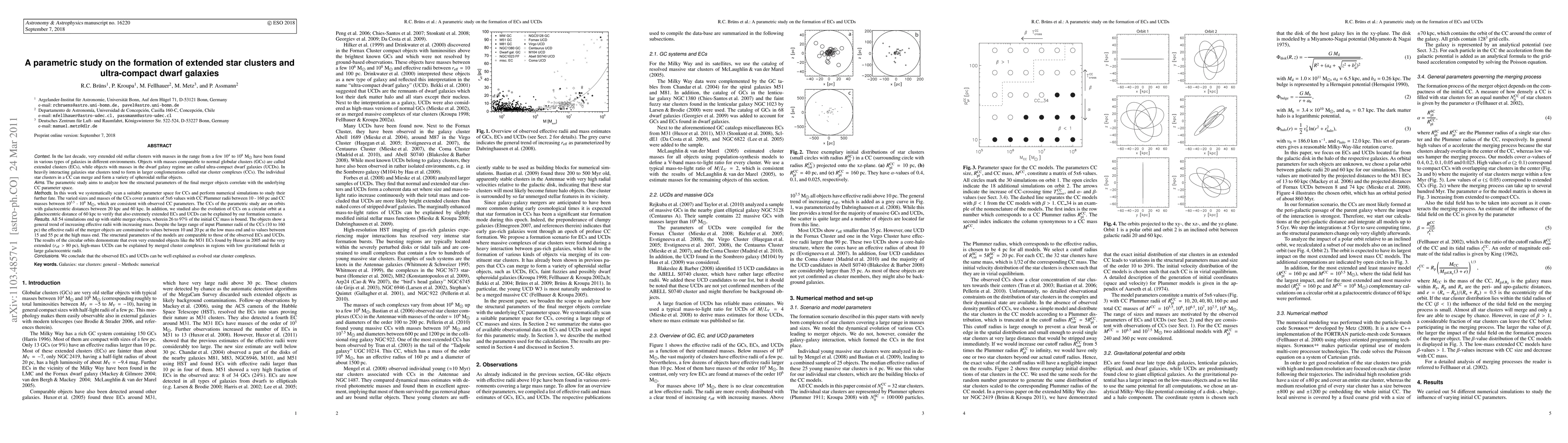 Researchers studied the formation of extended star clusters and ultra-compact dwarf galaxies using simulations, finding that merger objects can explain the origins of these objects with masses comparable to normal globular clusters.
