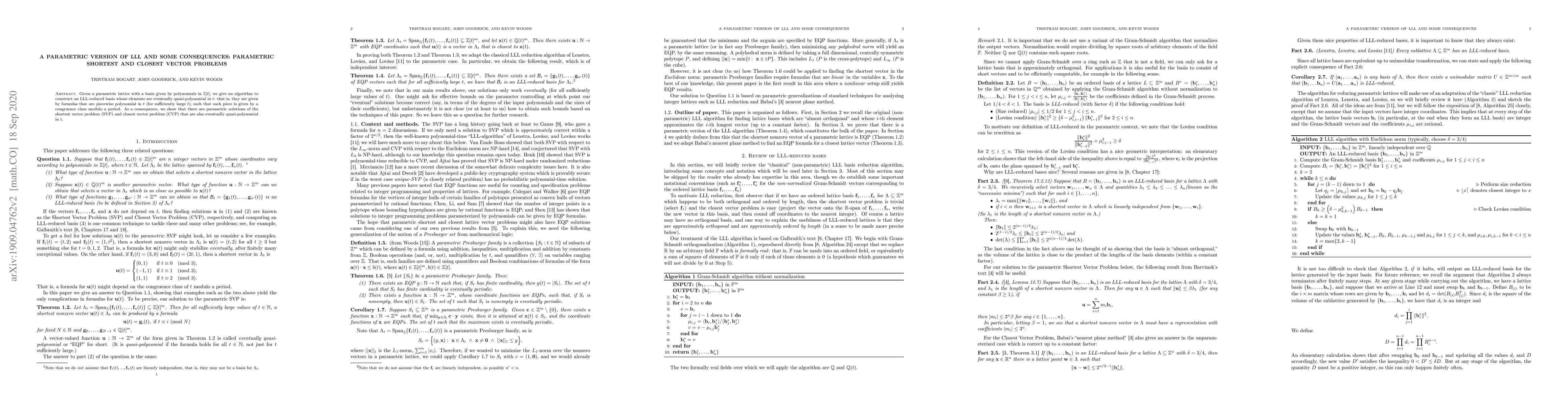 This paper presents an algorithm to construct an LLL-reduced basis for parametric lattices, where the basis elements are eventually quasi-polynomial in the parameter t. It also demonstrates parametric solutions for the shortest and closest vector problems that are eventually quasi-polynomial in t.