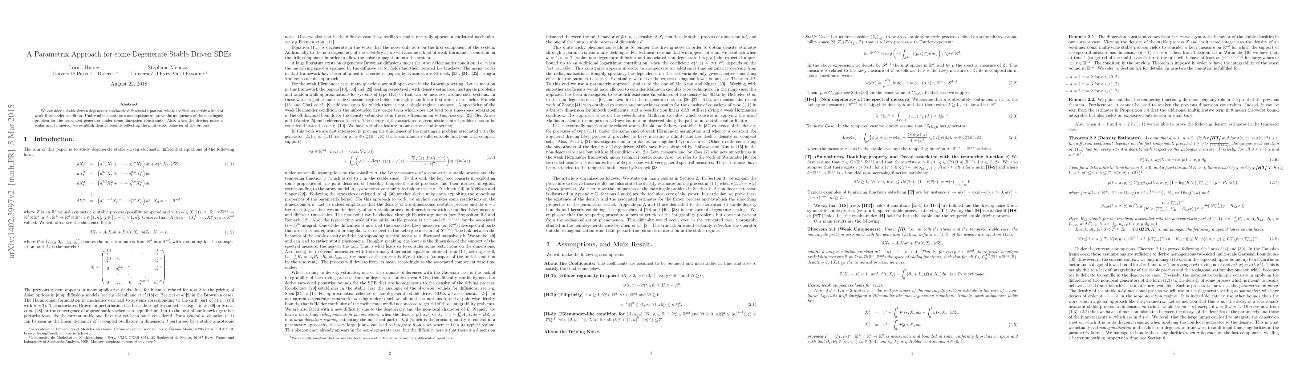 This paper investigates a degenerate stable driven stochastic differential equation (SDE) under a weak Hörmander condition, proving the uniqueness of the martingale problem for its associated generator. Additionally, density bounds are established for the process when the driving noise is scalar and tempered, highlighting its multi-scale behavior.