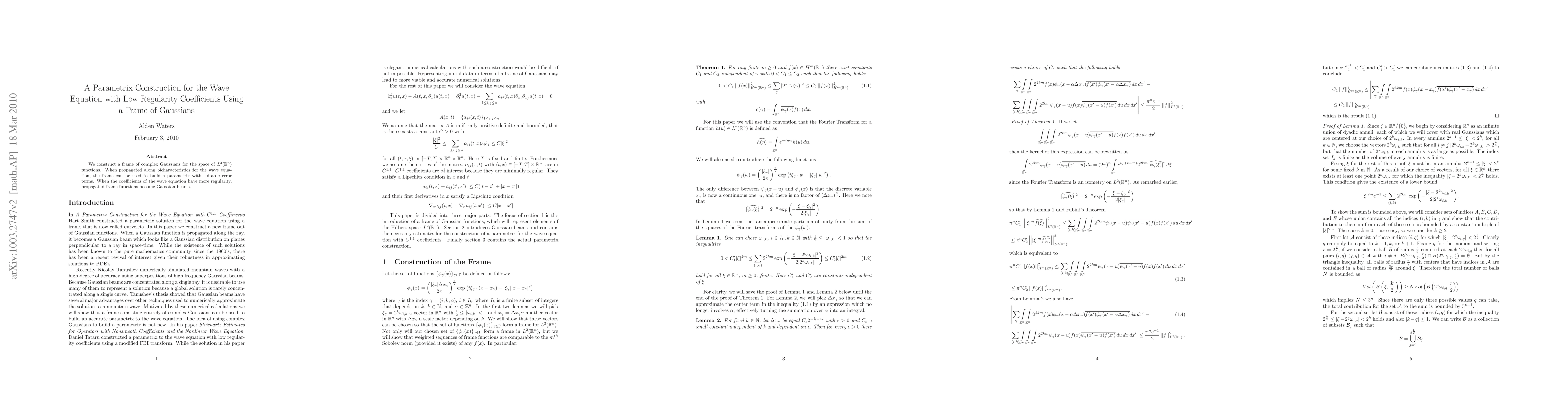 Researchers created a frame of complex Gaussians to solve the wave equation with coefficients of low regularity. This method builds a parametrix that can handle more irregular coefficients.