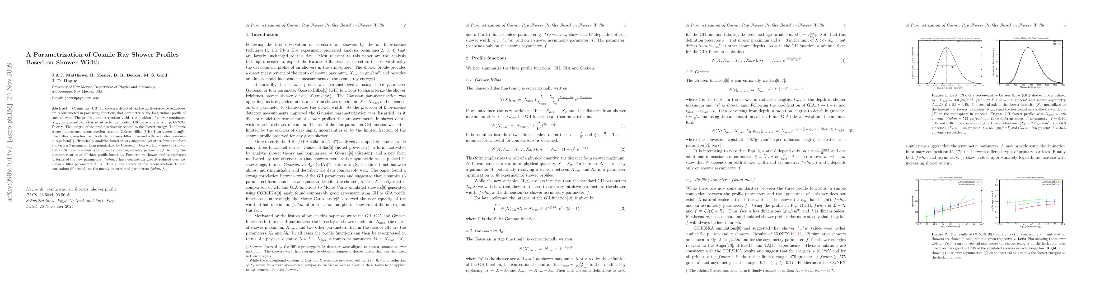 Researchers developed a new method to reconstruct cosmic ray shower profiles using shower width and asymmetry parameters, reducing correlations with traditional parameterization methods.