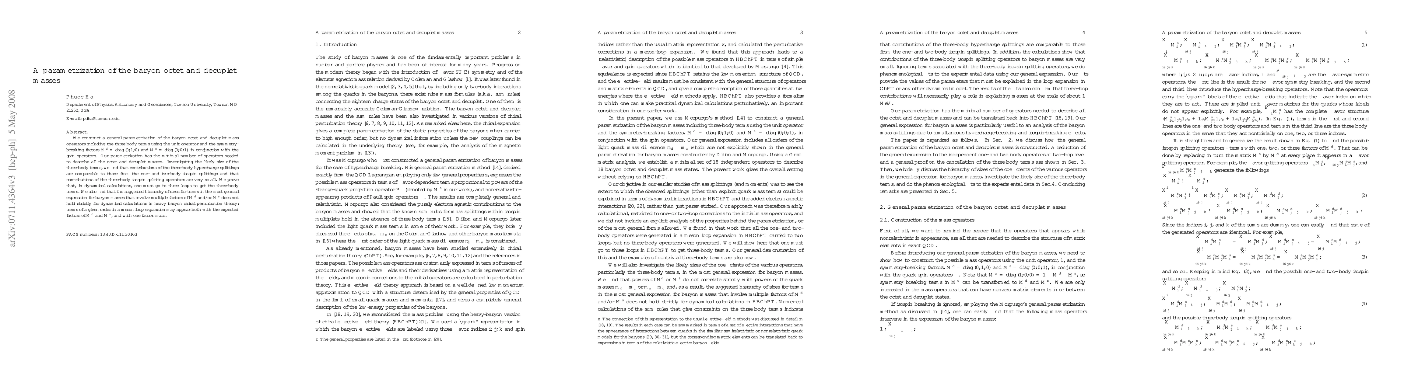 We construct a general parametrization of the baryon octet and decuplet mass operators including the three-body terms using the unit operator and the symmetry-breaking factors $M^d=\textrm{diag} (0,1,0)$ and $M^s=\textrm{diag} (0,0,1)$ in conjunction with the spin operators. Our parametrization has the minimal number of operators needed to describe all the octet and decuplet masses. Investigating the likely size of the three-body terms, we find that contributions of the three-body hypercharge splittings are comparable to those from the one- and two-body isospin splittings and that contributions of the three-body isospin splitting operators are very small. We prove that, in dynamical calculations, one must go to three loops to get the three-body terms. We also find that the suggested hierarchy of sizes for terms in the most general expression for baryon masses that involve multiple factors of $M^d$ and/or $M^s$ does not hold strictly for dynamical calculations in heavy baryon chiral perturbation theory: terms of a given order in a meson loop expansion may appear both with the expected factors of $M^d$ and $M^s$, and with one factor more.