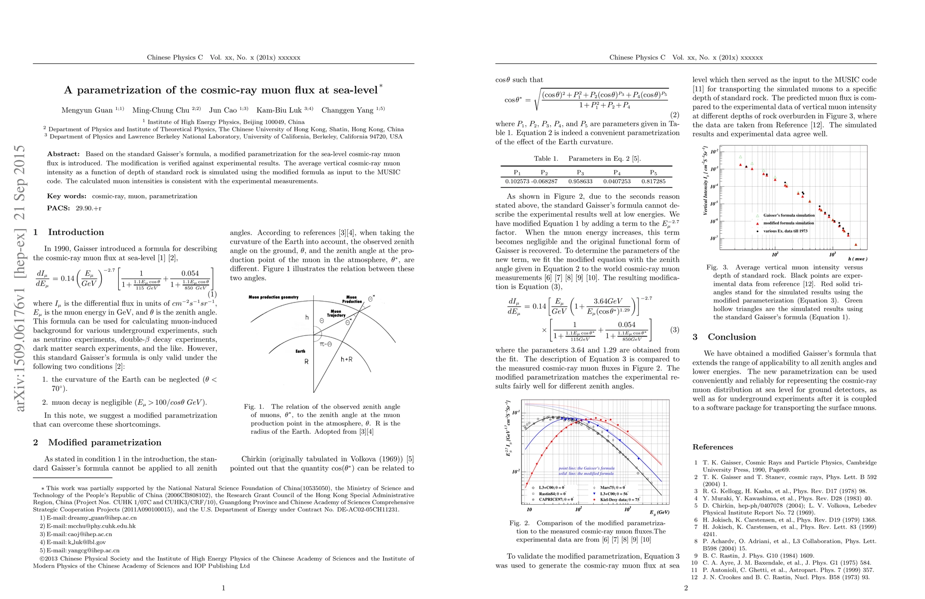 This paper introduces a modified parametrization for sea-level cosmic-ray muon flux based on Gaisser's formula, verified against experimental data, and simulates muon intensity in standard rock depth using the MUSIC code, showing consistency with experimental measurements.