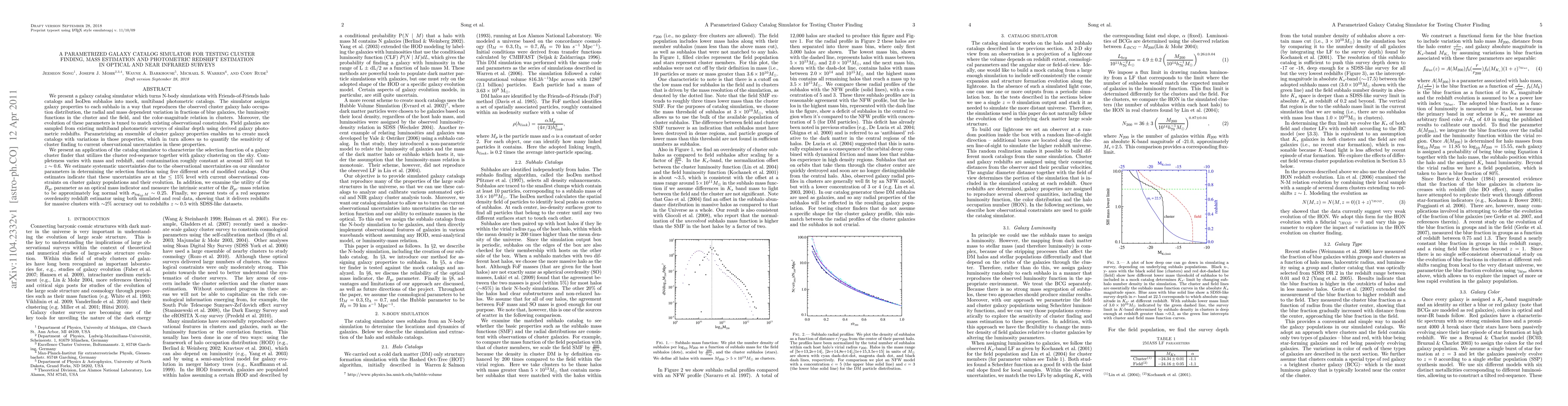 This paper introduces a galaxy catalog simulator that converts N-body simulations into multiband photometric mocks, enabling tests of cluster finding, mass estimation, and photometric redshift estimation in optical and near-infrared surveys. The simulator accurately reproduces observed galaxy properties and their evolution, allowing for the assessment of systematic uncertainties in cluster selection functions and the evaluation of mass indicators and redshift estimation techniques.