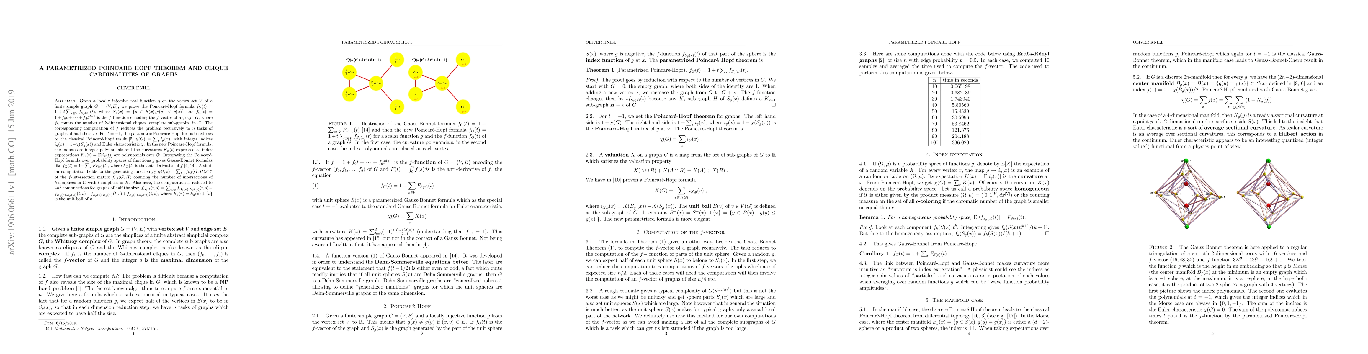 This paper proves a parametrized Poincare-Hopf theorem for graphs, reducing the problem of counting k-dimensional cliques to n tasks of half the size, and provides new formulas for calculating f-vectors and generating functions.