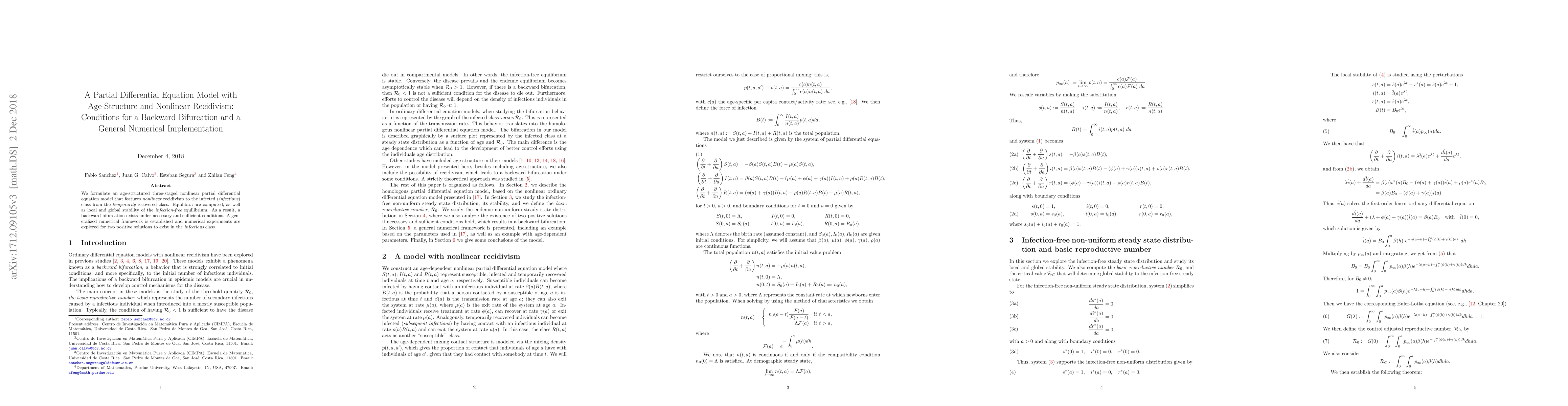 \noindent We formulate an age-structured three-staged nonlinear partial differential equation model that features {\it nonlinear} recidivism to the infected ({\it infectious}) class from the {\it temporarily} recovered class. Equilibria are computed, as well as local and global stability of the {\it infection-free} equilibrium. As a result, a backward-bifurcation exists under necessary and sufficient conditions. A generalized numerical framework is established and numerical experiments are explored for two positive solutions to exist in the {\it infectious} class.