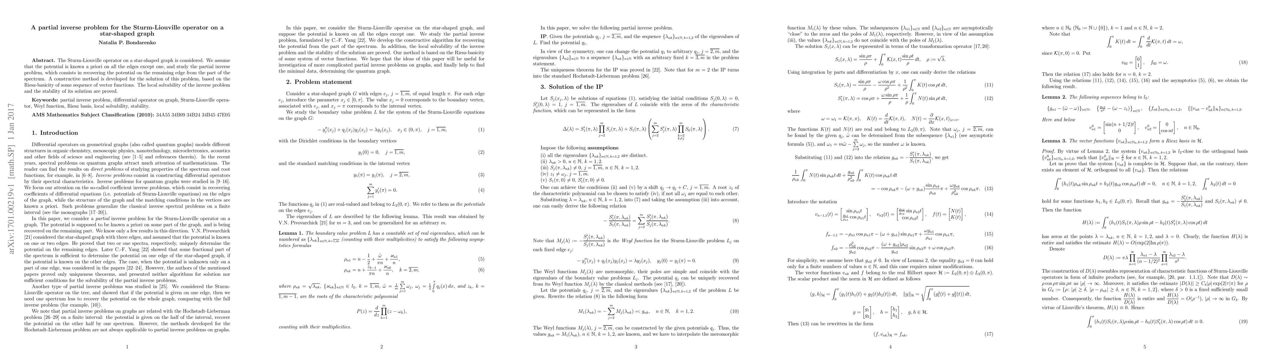 The Sturm-Liouville operator on a star-shaped graph is considered. We assume that the potential is known a priori on all the edges except one, and study the partial inverse problem, which consists in recovering the potential on the remaining edge from the part of the spectrum. A constructive method is developed for the solution of this problem, based on the Riesz-basicity of some sequence of vector functions. The local solvability of the inverse problem and the stability of its solution are proved.