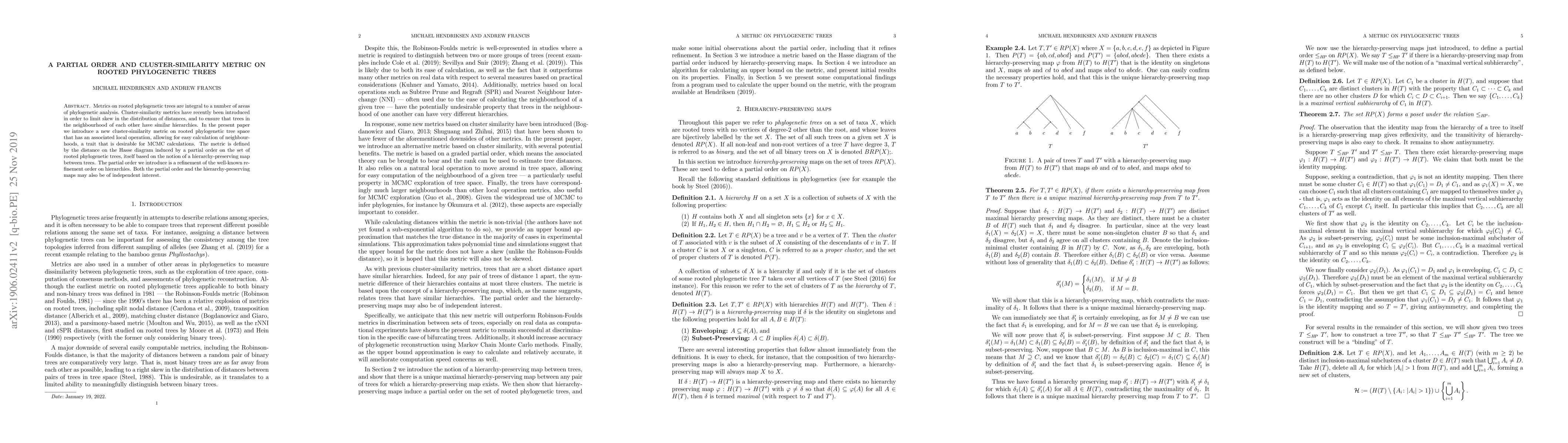 This paper introduces a new cluster-similarity metric on rooted phylogenetic trees, defined by a distance on the Hasse diagram induced by a novel partial order. The metric facilitates easy calculation of neighbourhoods, enhancing Markov Chain Monte Carlo (MCMC) calculations.
