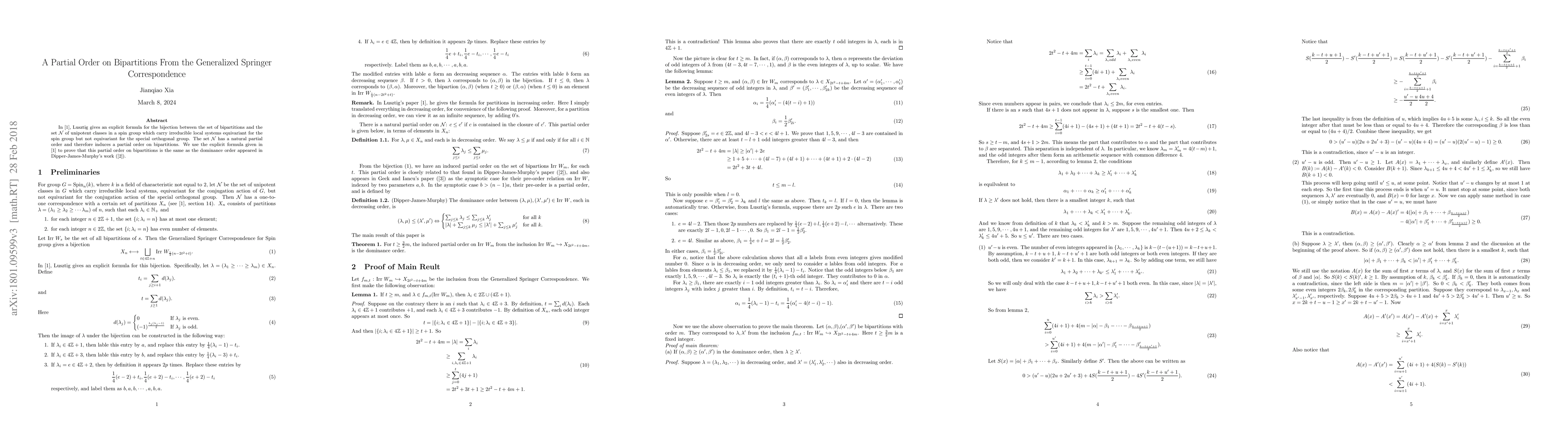 Researchers prove that a partial order on bipartitions in group theory is equivalent to a known ordering from previous work, providing insight into the structure of these partitions.
