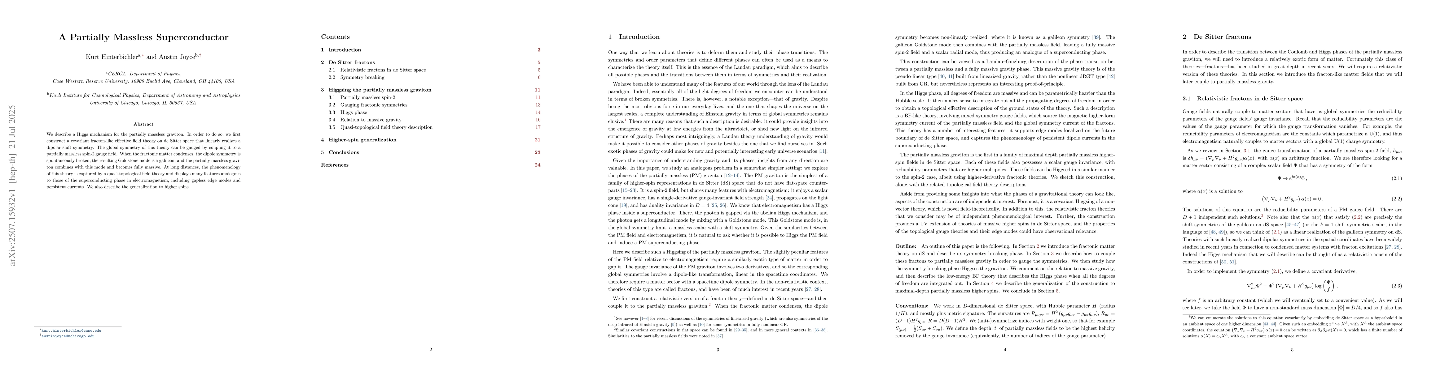 We describe a Higgs mechanism for the partially massless graviton. In order to do so, we first construct a covariant fracton-like effective field theory on de Sitter space that linearly realizes a dipolar shift symmetry. The global symmetry of this theory can be gauged by coupling it to a partially massless spin-2 gauge field. When the fractonic matter condenses, the dipole symmetry is spontaneously broken, the resulting Goldstone mode is a galileon and the partially massless graviton combines with this mode and becomes fully massive. At long distances, the phenomenology of this theory is captured by a quasi-topological field theory and displays many features analogous to those of the superconducting phase in electromagnetism, including gapless edge modes and persistent currents. We also describe the generalization to higher spins.