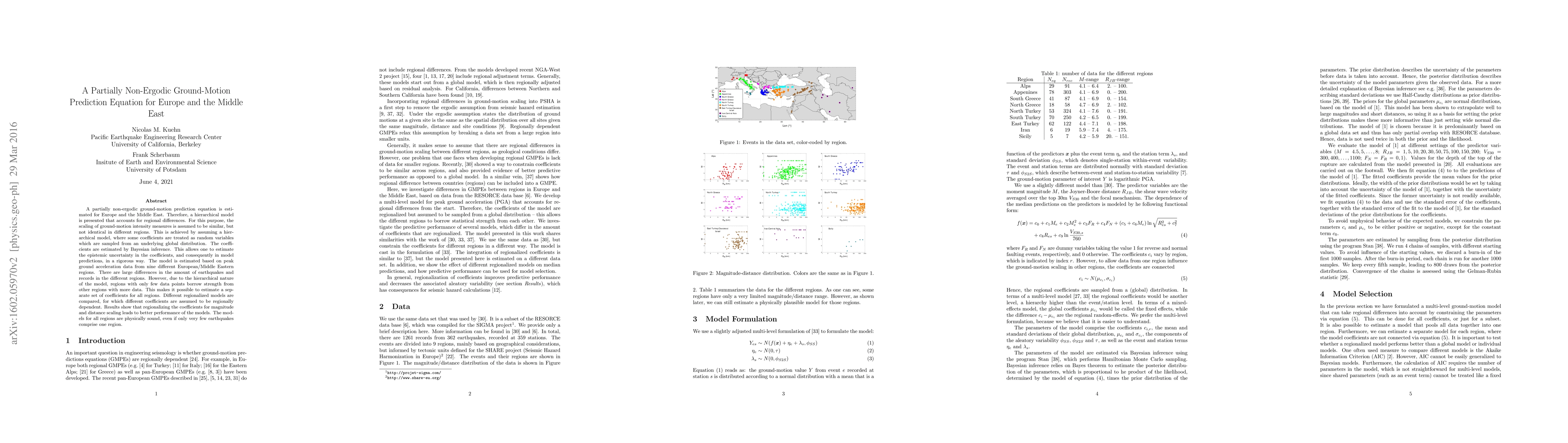 A new ground-motion prediction equation for Europe is developed using a hierarchical model that accounts for regional differences, allowing for more accurate predictions across regions with varying earthquake data.