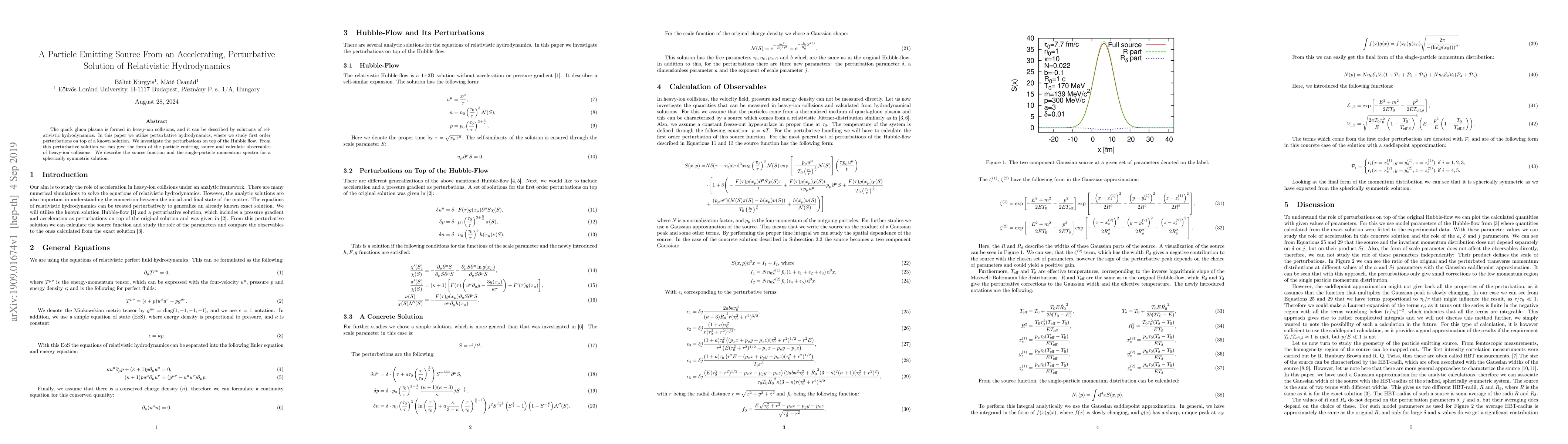 Researchers used perturbative hydrodynamics to study particle emitting sources in heavy-ion collisions, revealing a spherically symmetric solution with distinct single-particle momentum spectra.