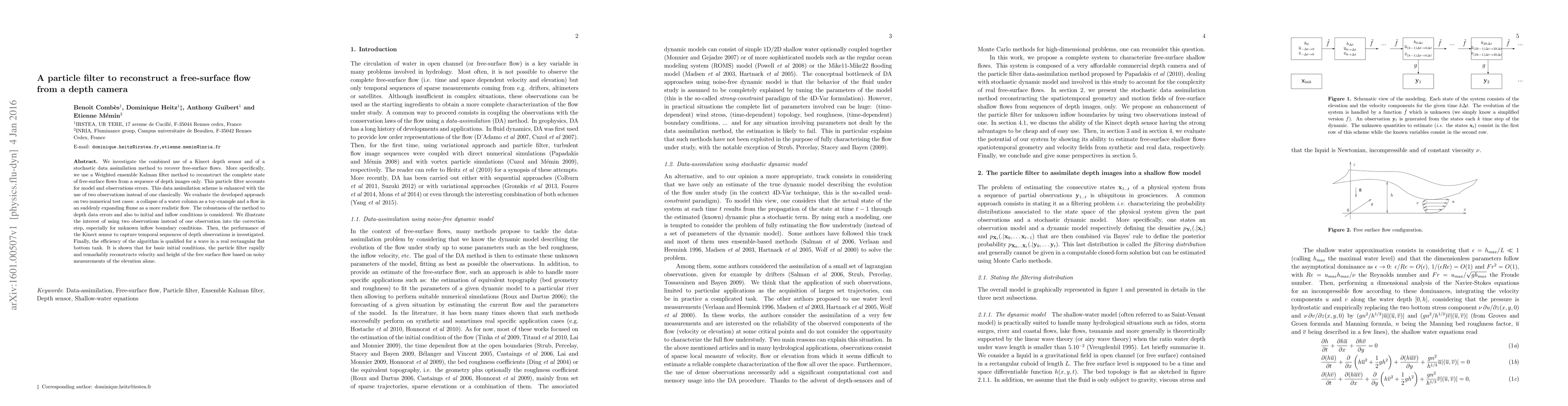 A new method using a particle filter to reconstruct free-surface flows from depth camera images is developed, showing promise for accurate reconstruction of velocity and height under noisy conditions.