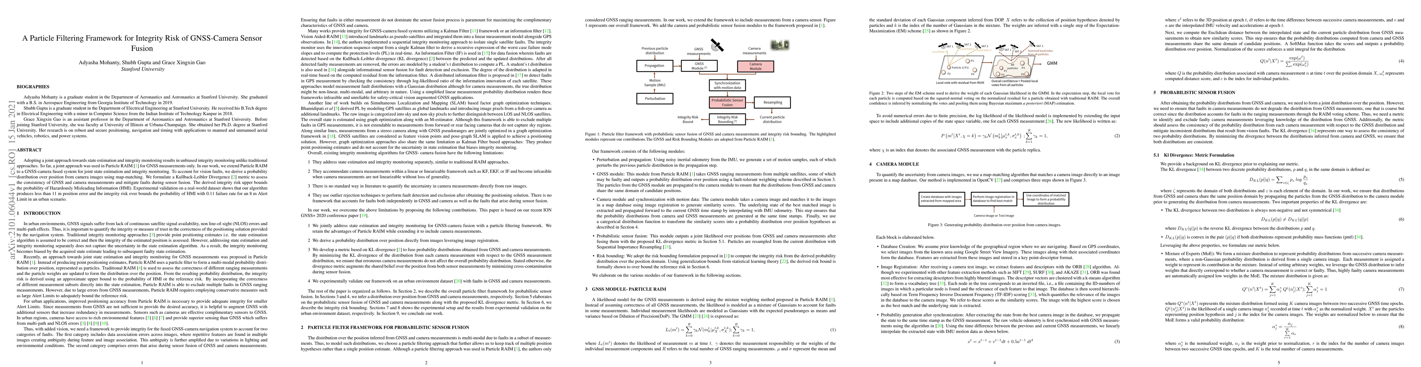 This research paper proposes a new method for accurately estimating position and integrity risk in GNSS-camera sensor fusion systems, achieving an 11m position error and 0.11 failure rate in urban scenarios.