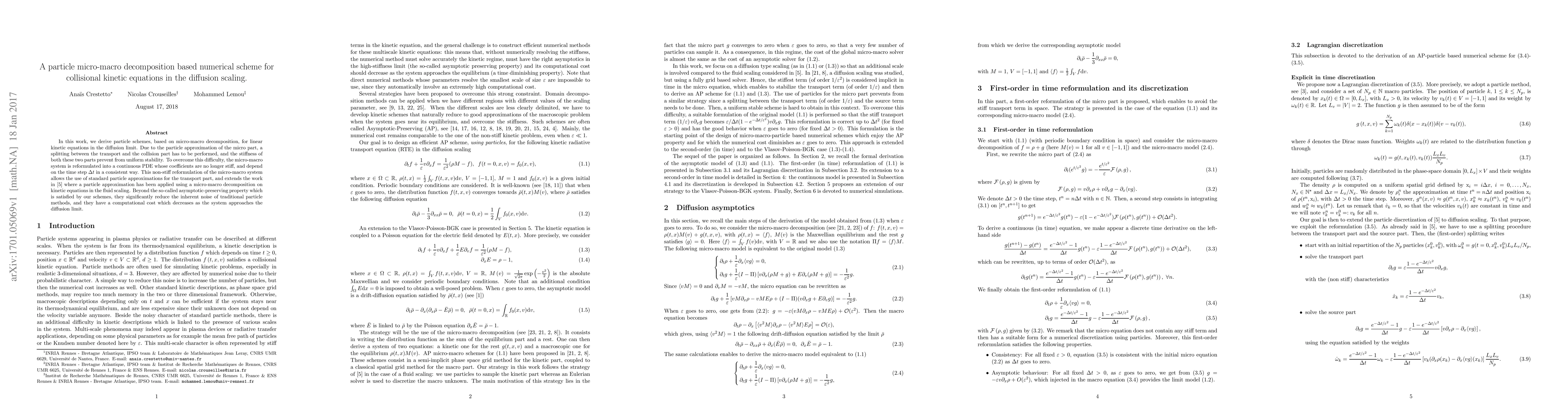 This paper develops particle schemes based on micro-macro decomposition for linear kinetic equations in the diffusion limit, reformulating the system to avoid stiffness issues. The reformulation reduces noise and computational cost as the system approaches the diffusion limit.