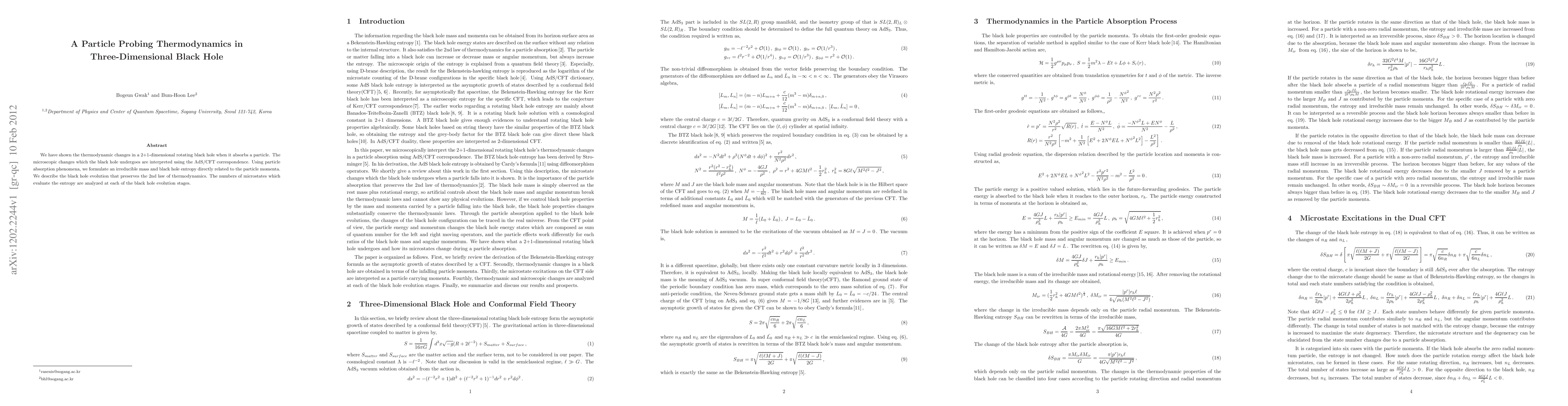 Researchers used particle absorption in a 2+1D rotating black hole to show its thermodynamic changes and developed a direct link between black hole entropy and particle momenta, preserving the 2nd law of thermodynamics.