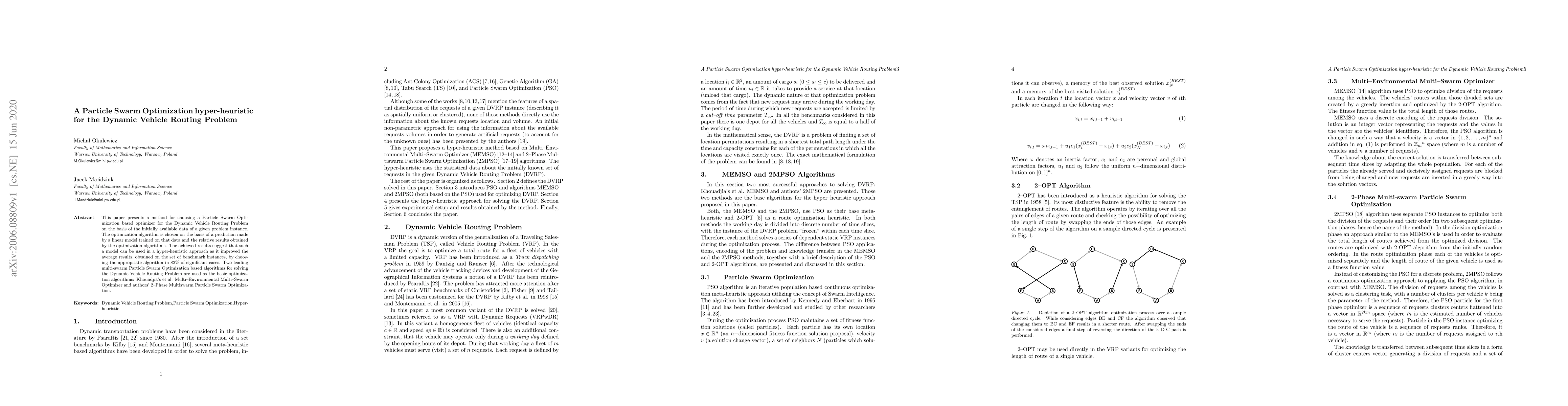 This paper proposes a hyper-heuristic approach using Particle Swarm Optimization (PSO) to select the best PSO-based algorithm for the Dynamic Vehicle Routing Problem based on initial data. The method improves average results by choosing the appropriate algorithm in 82% of cases.