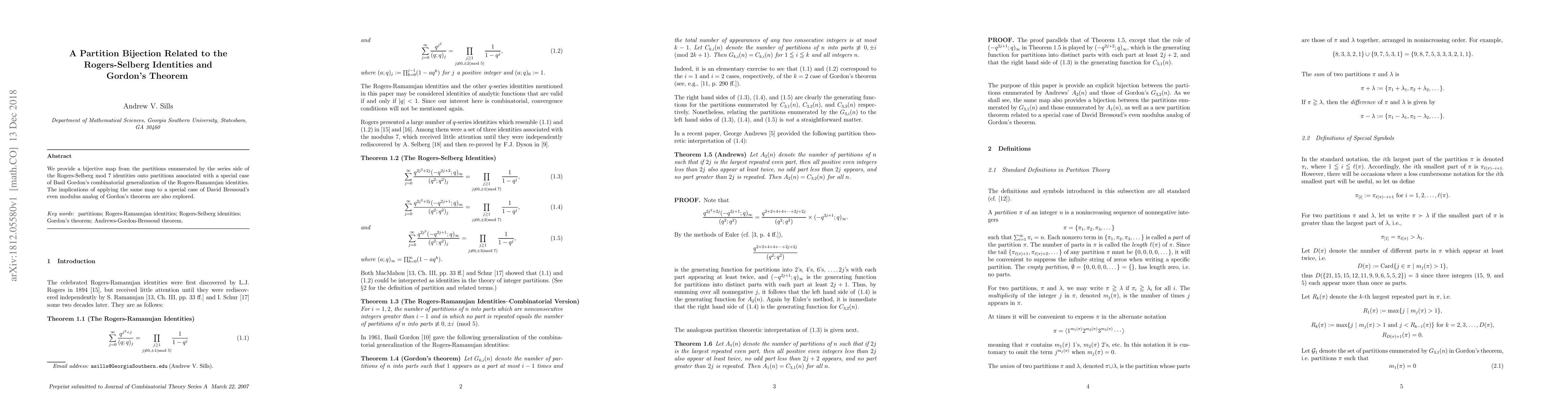 Researchers found a bijective map between Rogers-Selberg identities and Basil Gordon's combinatorial generalization of the Rogers-Ramanujan identities, with implications for David Bressoud's theorem.