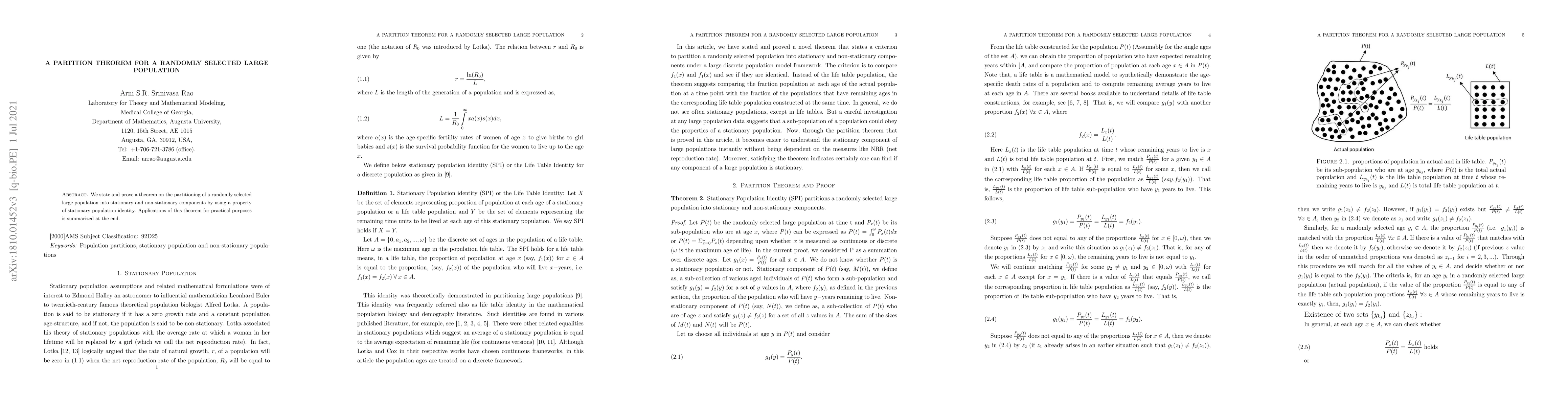We state and prove a theorem on the partitioning of a randomly selected large population into stationary and non-stationary components by using a property of stationary population identity. Applications of this theorem for practical purposes is summarized at the end.