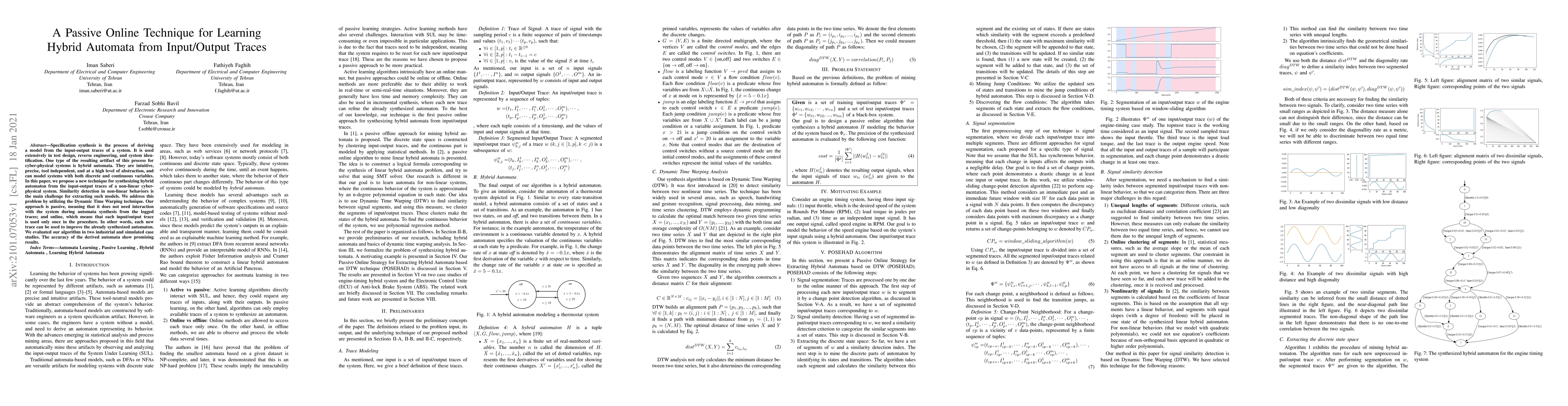 This paper proposes a passive online technique for synthesizing hybrid automata from input-output traces of non-linear cyber-physical systems. It utilizes Dynamic Time Warping to detect similarities in non-linear behaviors, and the method is evaluated in industrial and simulated case studies, showing promising results.