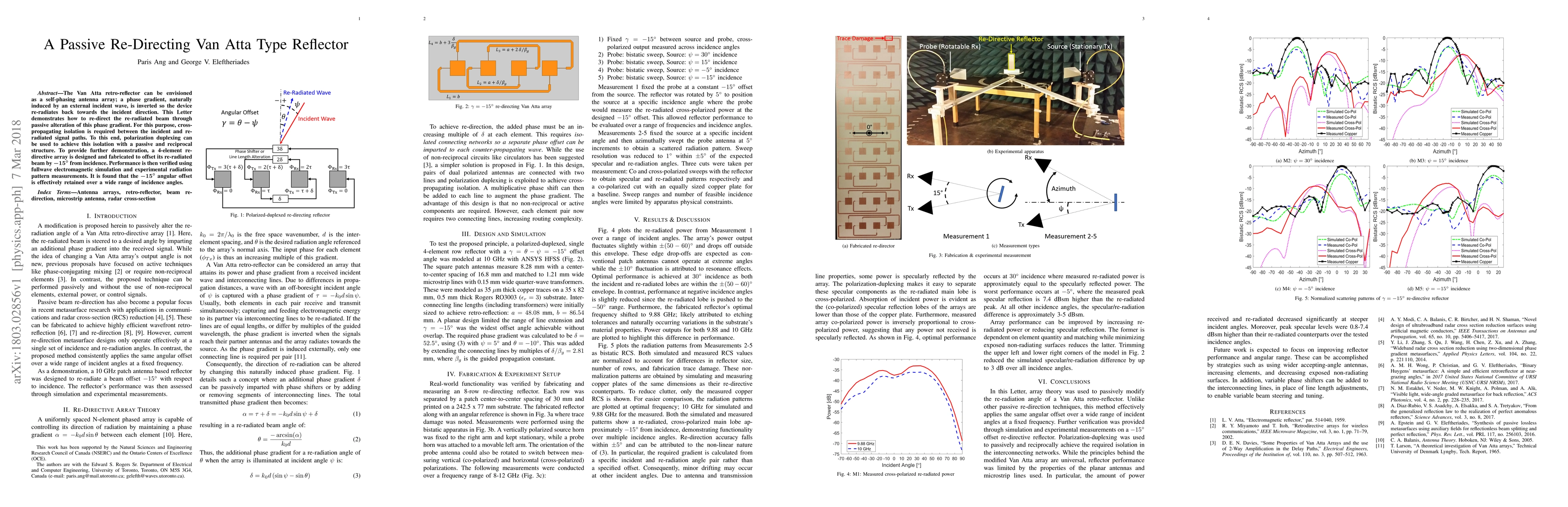 The Van Atta retro-reflector can be envisioned as a self-phasing antenna array; a phase gradient, naturally induced by an external incident wave, is inverted so the device re-radiates back towards the incident direction. This Letter demonstrates how to re-direct the re-radiated beam through passive alteration of this phase gradient. For this purpose, crosspropagating isolation is required between the incident and reradiated signal paths. To this end, polarization duplexing can be used to achieve this isolation with a passive and reciprocal structure. To provide further demonstration, a 4-element redirective array is designed and fabricated to offset its re-radiated beam by -15{\deg} from incidence. Performance is then verified using fullwave electromagnetic simulation and experimental radiation pattern measurements. It is found that the -15{\deg} angular offset is effectively retained over a wide range of incidence angles.