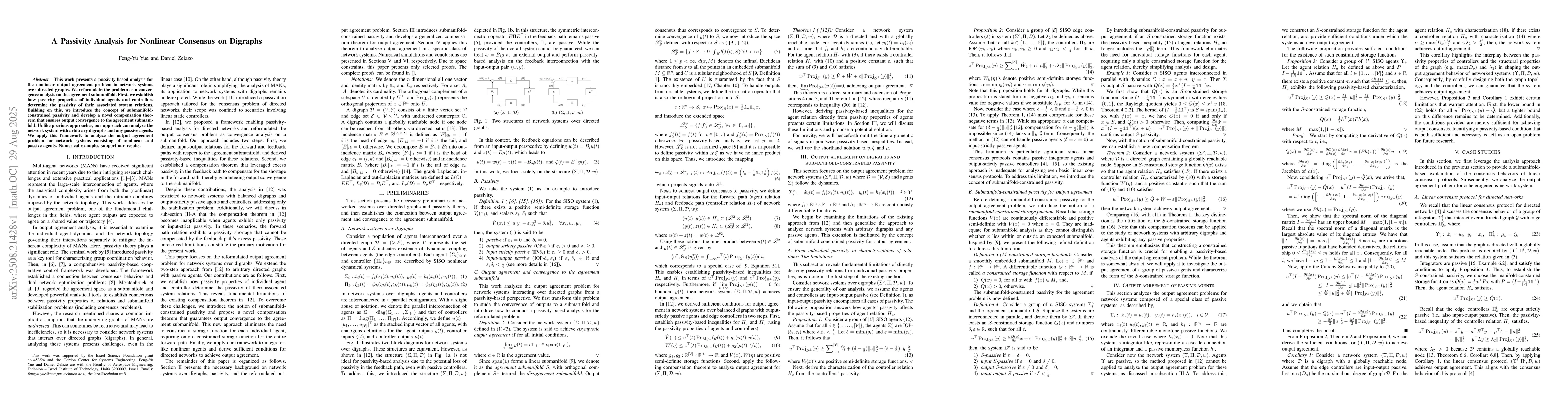 This work presents a passivity-based analysis for the nonlinear output agreement problem in network systems over directed graphs. We reformulate the problem as a convergence analysis on the agreement submanifold. First, we establish how passivity properties of individual agents and controllers determine the passivity of their associated system relations. Building on this, we introduce the concept of submanifold-constrained passivity and develop a novel compensation theorem that ensures output convergence to the agreement submanifold. Unlike previous approaches, our approach can analyze the network system with arbitrary digraphs and any passive agents. We apply this framework to analyze the output agreement problem for network systems consisting of nonlinear and passive agents. Numerical examples support our results.