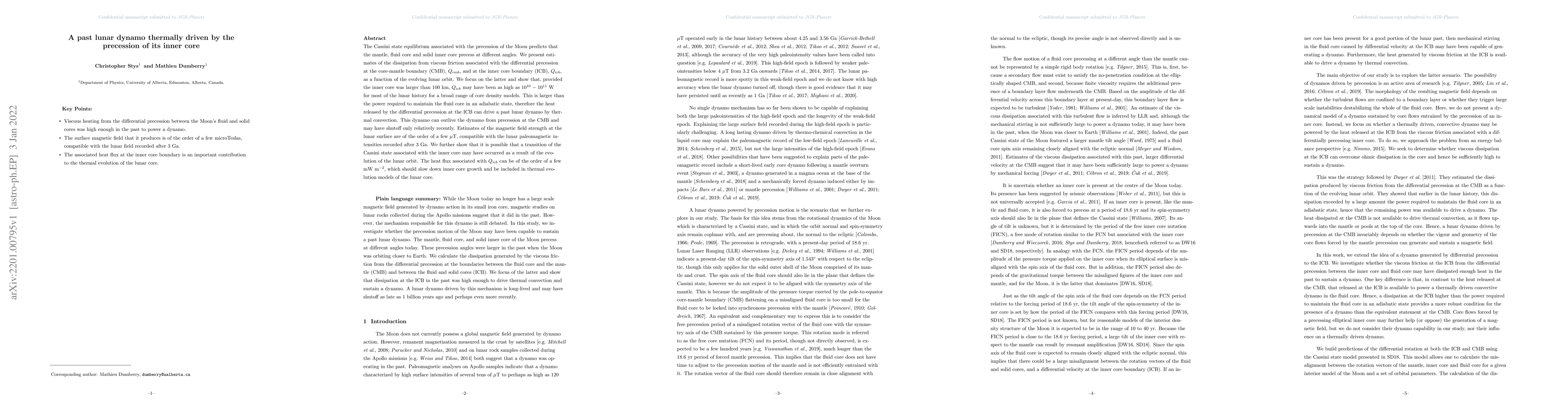 This paper investigates how the precession of the Moon's inner core could have driven a thermal lunar dynamo, estimating that the inner core's differential precession may have released up to $10^{10}-10^{11}$ W of heat, sufficient to sustain a dynamo and produce a magnetic field of a few $\mu$T. This dynamo may have persisted longer than previously thought and influenced lunar core thermal evolution.