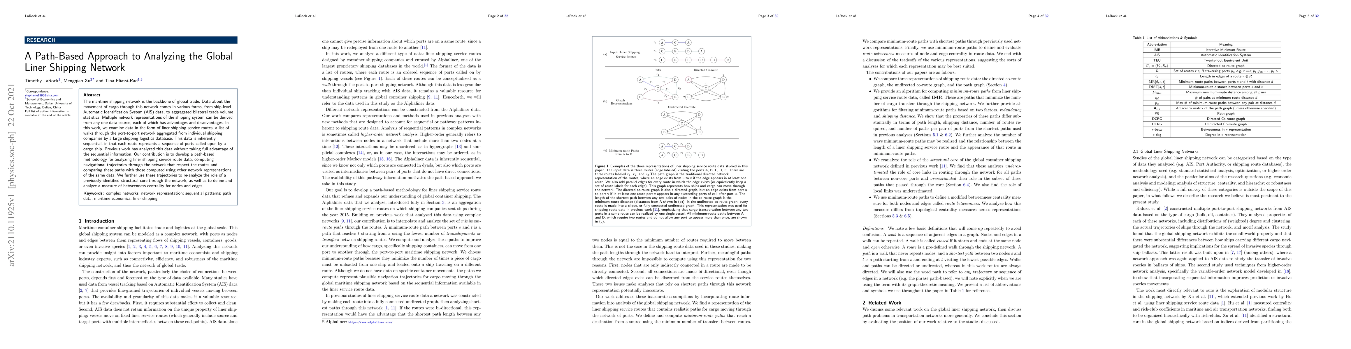 This paper introduces a path-based methodology to analyze liner shipping service routes, leveraging sequential port-to-port data to compute navigational trajectories. It compares these routes with other network representations, re-examines a structural core, and defines a new betweenness centrality measure for nodes and edges.