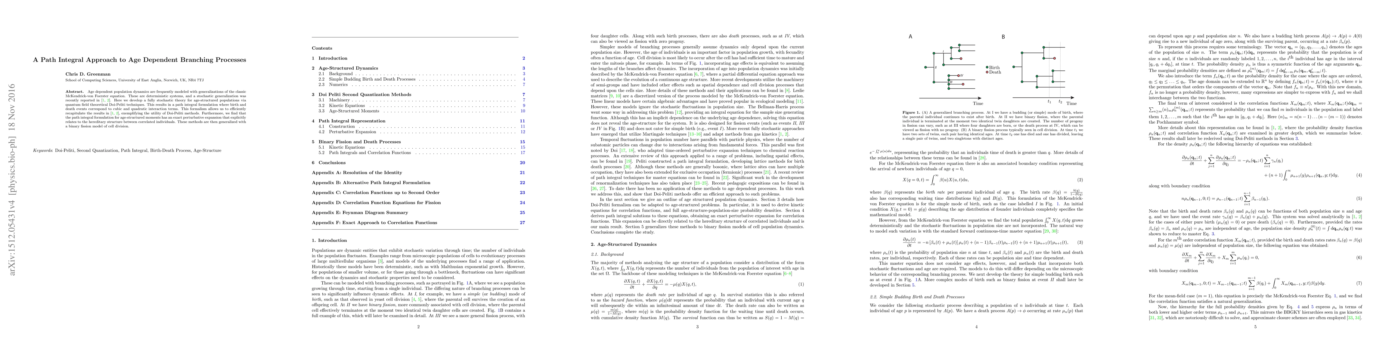 Researchers developed a stochastic theory for age-structured populations using quantum field theoretical Doi-Peliti techniques, providing a path integral formulation that models birth and death events through cubic and quadratic interaction terms.