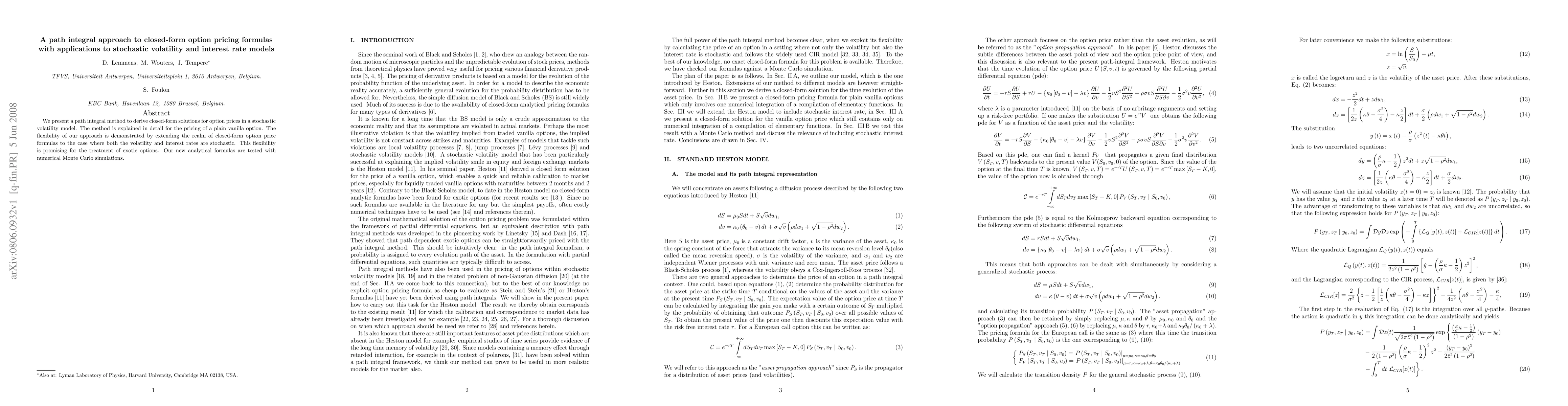 This paper introduces a path integral method to derive closed-form option pricing formulas for stochastic volatility models, extending the approach to include stochastic interest rates. The method is validated through numerical Monte Carlo simulations.