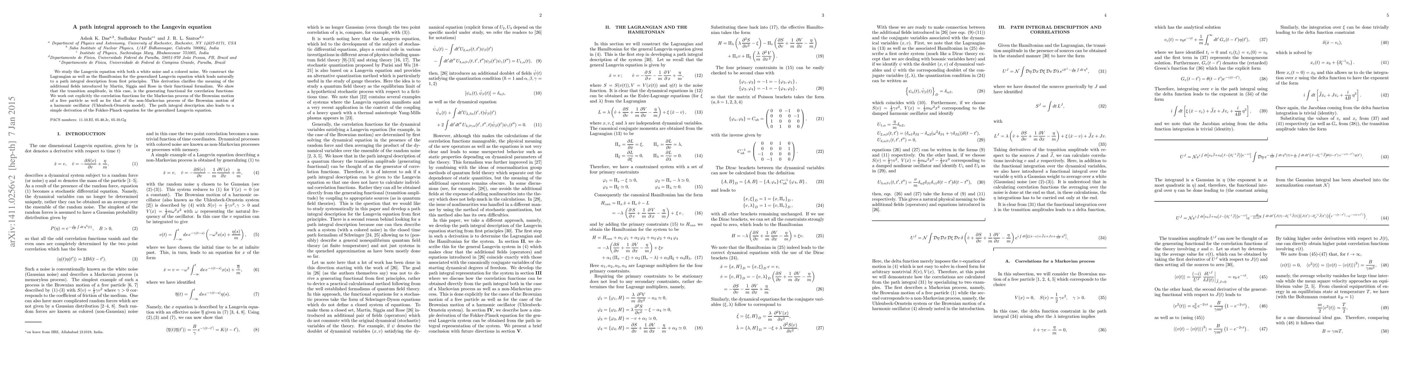 This paper develops a path integral approach to the Langevin equation, constructing both Lagrangian and Hamiltonian formulations to derive a path integral description. It clarifies the functional formalism of Martin, Siggia, and Rose and explicitly computes correlation functions for both Markovian and non-Markovian Brownian motion processes, also deriving the Fokker-Planck equation.