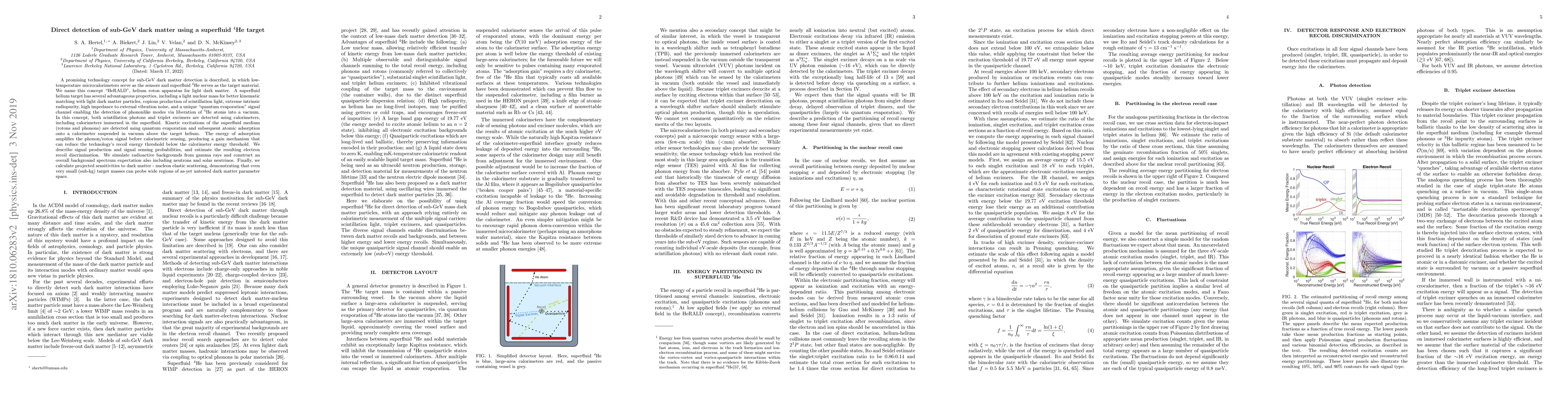 A promising technology concept for sub-GeV dark matter detection is described, in which low-temperature microcalorimeters serve as the sensors and superfluid $^4$He serves as the target material. A superfluid helium target has several advantageous properties, including a light nuclear mass for better kinematic matching with light dark matter particles, copious production of scintillation light, extremely good intrinsic radiopurity, a high impedance to external vibration noise, and a unique mechanism for observing phonon-like modes via liberation of $^4$He atoms into a vacuum (`quantum evaporation'). In this concept, both scintillation photons and triplet excimers are detected using calorimeters, including calorimeters immersed in the superfluid. Kinetic excitations of the superfluid medium (rotons and phonons) are detected using quantum evaporation and subsequent atomic adsorption onto a microcalorimeter suspended in vacuum above the target helium. The energy of adsorption amplifies the phonon/roton signal before calorimetric sensing, producing a gain mechanism that can reduce the techonology's recoil energy threshold below the calorimeter energy threshold. We describe signal production and signal sensing probabilities, and estimate electron recoil discrimination. We then simulate radioactive backgrounds from gamma rays and neutrons. Dark matter - nucleon elastic scattering cross-section sensitivities are projected, demonstrating that even very small (sub-kg) target masses can probe wide regions of as-yet untested dark matter parameter space.