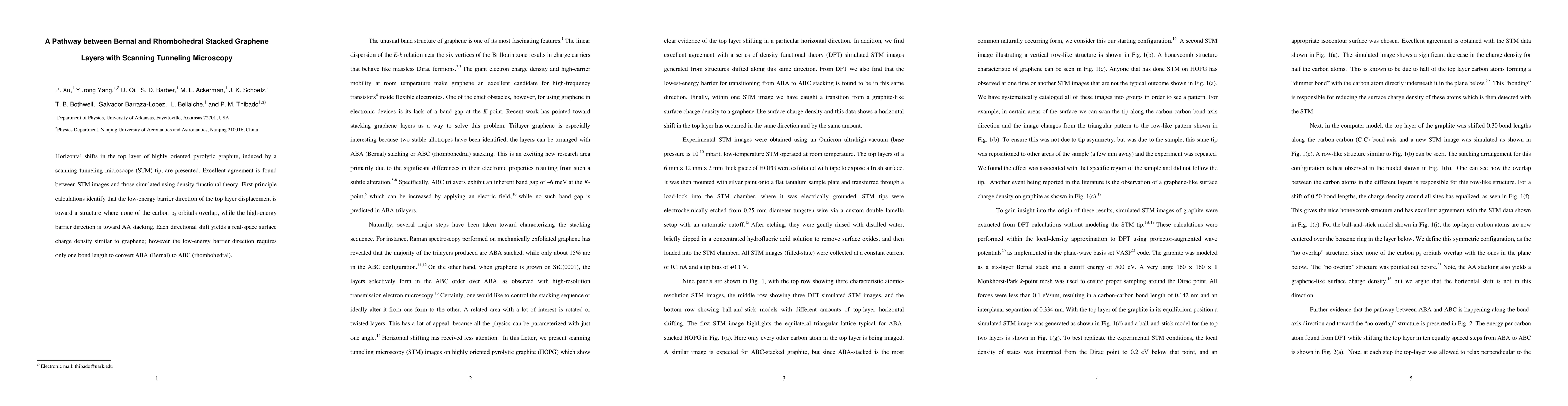 Researchers used scanning tunneling microscopy to shift stacked graphene layers, finding a low-energy pathway from Bernal to rhombohedral structures, which requires only one bond length change.