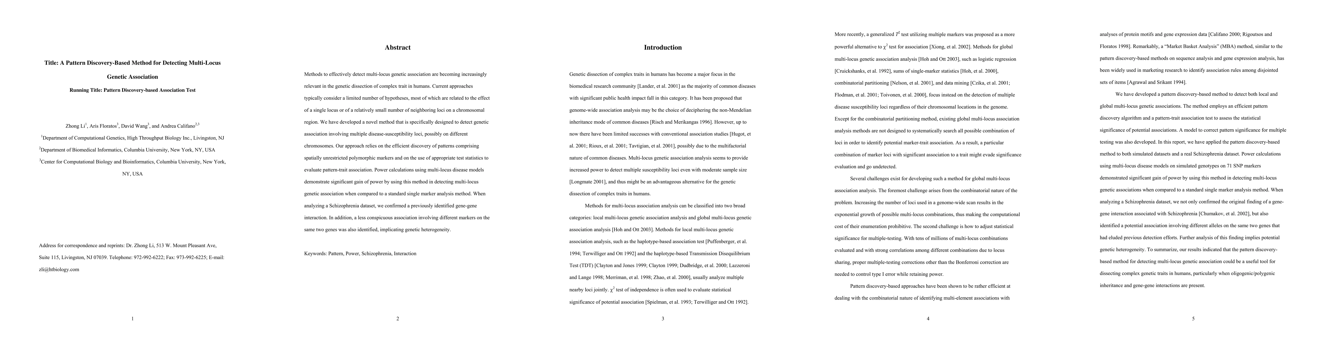 This paper introduces a novel pattern discovery-based method for detecting multi-locus genetic association, showing significant power gains over single-marker analysis. The method identifies interactions among multiple disease-susceptibility loci across different chromosomes, confirmed by a Schizophrenia dataset analysis revealing both known and new gene-gene interactions.