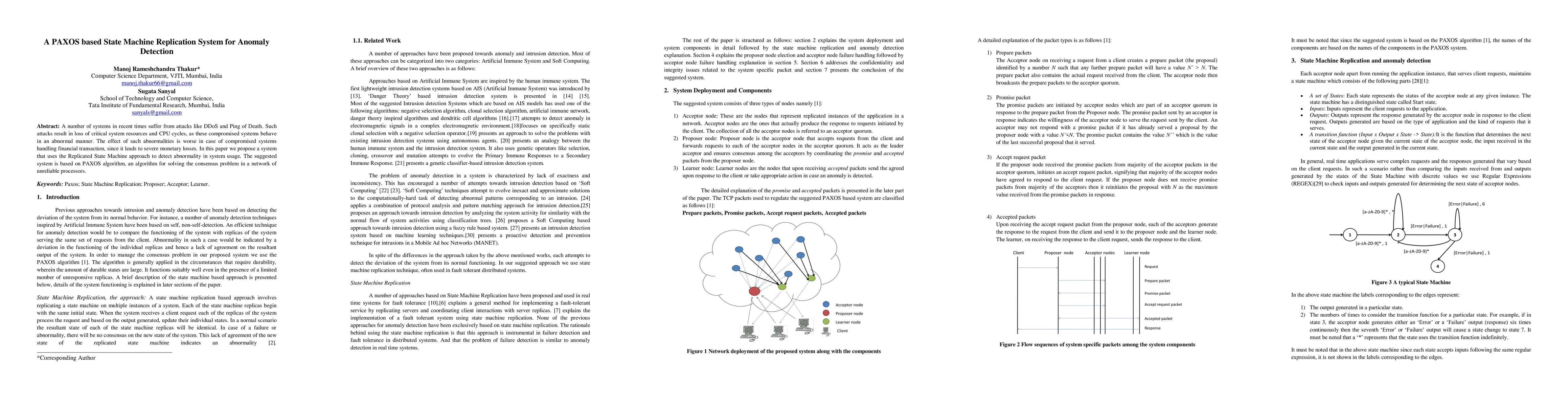 A number of systems in recent times suffer from attacks like DDoS and Ping of Death. Such attacks result in loss of critical system resources and CPU cycles, as these compromised systems behave in an abnormal manner. The effect of such abnormalities is worse in case of compromised systems handling financial transaction, since it leads to severe monetary losses. In this paper we propose a system that uses the Replicated State Machine approach to detect abnormality in system usage. The suggested system is based on PAXOS algorithm, an algorithm for solving the consensus problem in a network of unreliable processors.