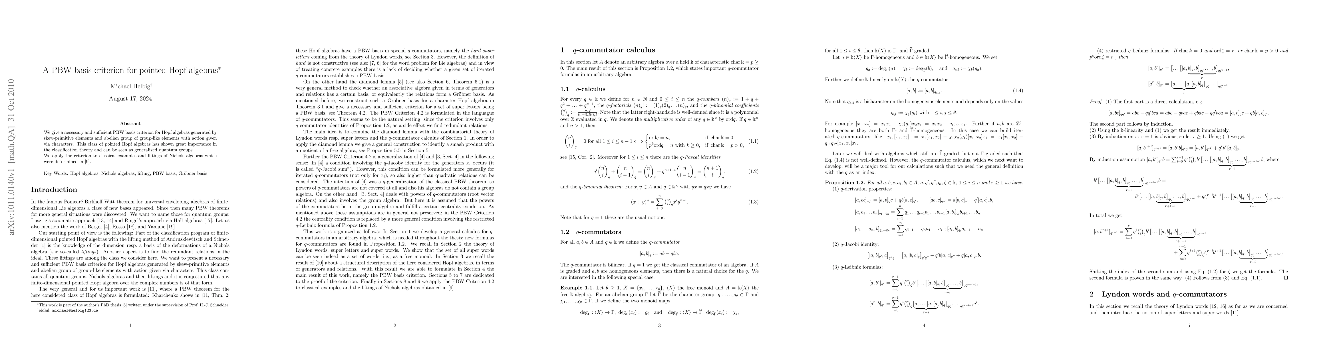 This paper establishes a necessary and sufficient criterion for a PBW basis in pointed Hopf algebras generated by skew-primitive elements and abelian group-like elements, crucial for classification theory and generalized quantum groups. The criterion is applied to classical examples and liftings of Nichols algebras.