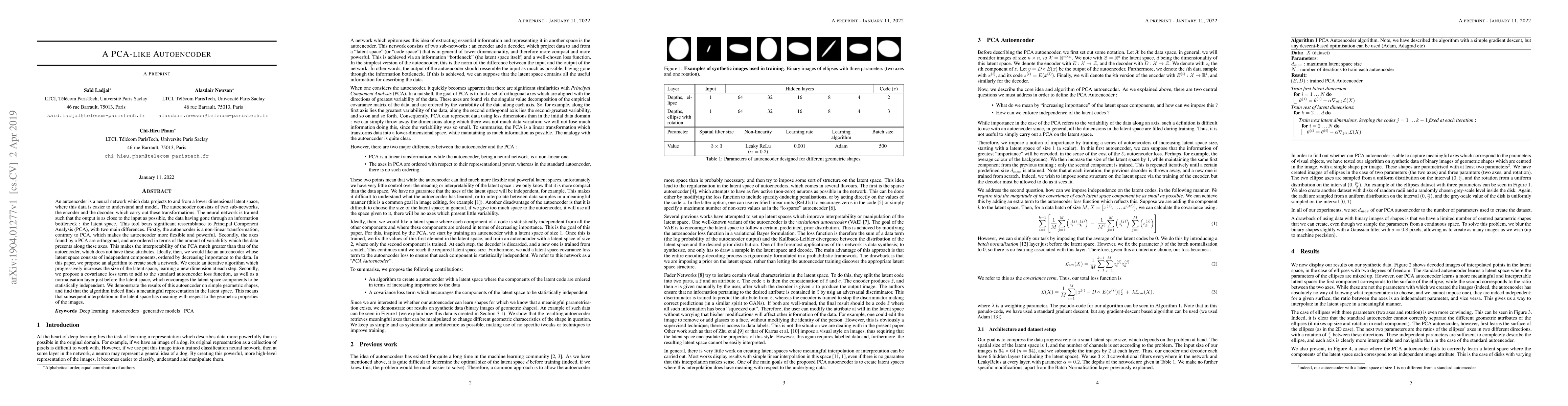 An autoencoder is a neural network which data projects to and from a lower dimensional latent space, where this data is easier to understand and model. The autoencoder consists of two sub-networks, the encoder and the decoder, which carry out these transformations. The neural network is trained such that the output is as close to the input as possible, the data having gone through an information bottleneck : the latent space. This tool bears significant ressemblance to Principal Component Analysis (PCA), with two main differences. Firstly, the autoencoder is a non-linear transformation, contrary to PCA, which makes the autoencoder more flexible and powerful. Secondly, the axes found by a PCA are orthogonal, and are ordered in terms of the amount of variability which the data presents along these axes. This makes the interpretability of the PCA much greater than that of the autoencoder, which does not have these attributes. Ideally, then, we would like an autoencoder whose latent space consists of independent components, ordered by decreasing importance to the data. In this paper, we propose an algorithm to create such a network. We create an iterative algorithm which progressively increases the size of the latent space, learning a new dimension at each step. Secondly, we propose a covariance loss term to add to the standard autoencoder loss function, as well as a normalisation layer just before the latent space, which encourages the latent space components to be statistically independent. We demonstrate the results of this autoencoder on simple geometric shapes, and find that the algorithm indeed finds a meaningful representation in the latent space. This means that subsequent interpolation in the latent space has meaning with respect to the geometric properties of the images.