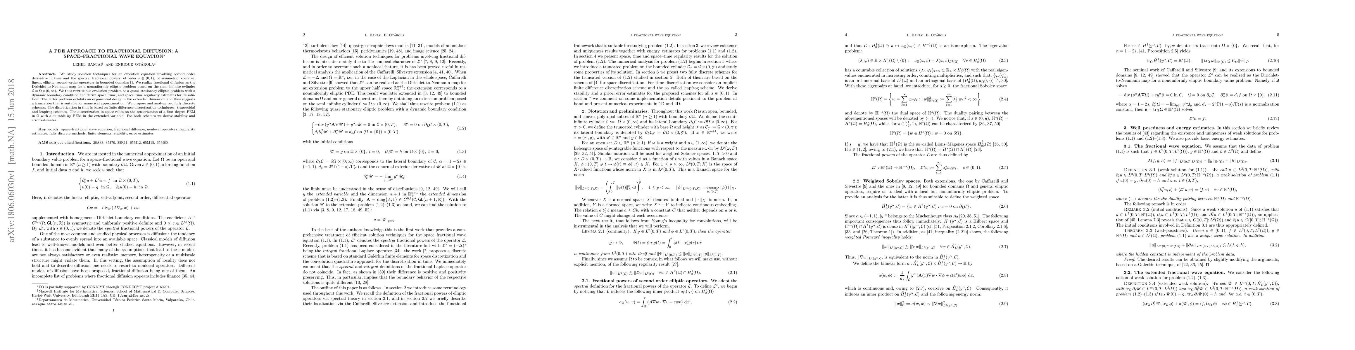This paper develops solution techniques for a fractional diffusion equation using a space-fractional wave equation. It proposes two fully discrete schemes based on finite difference and FEM methods, deriving stability and error estimates for numerical approximation.