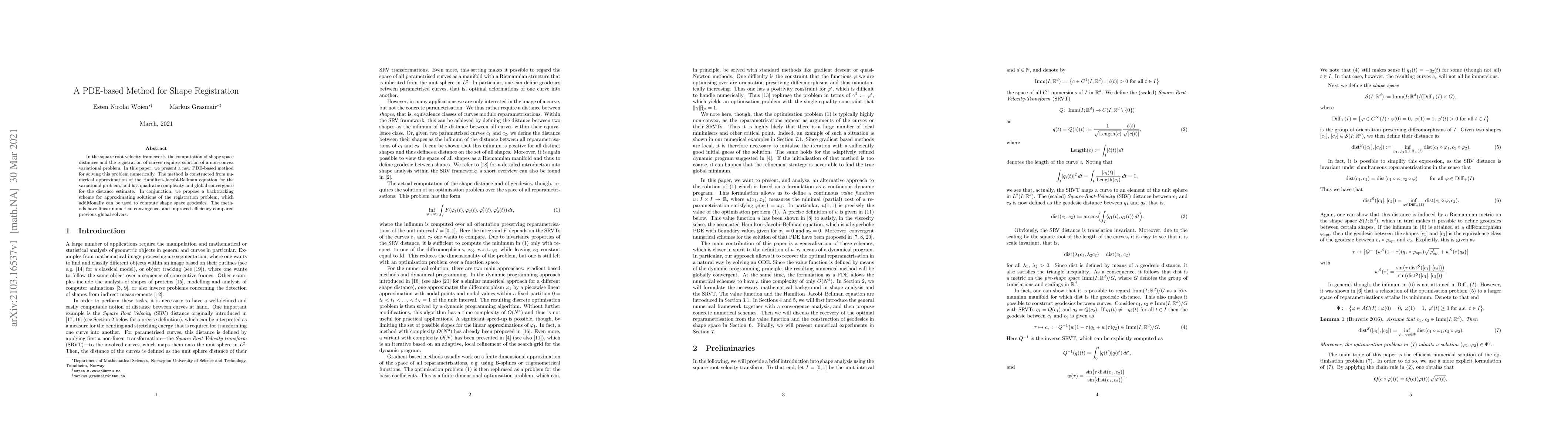 In the square root velocity framework, the computation of shape space distances and the registration of curves requires solution of a non-convex variational problem. In this paper, we present a new PDE-based method for solving this problem numerically. The method is constructed from numerical approximation of the Hamilton-Jacobi-Bellman equation for the variational problem, and has quadratic complexity and global convergence for the distance estimate. In conjunction, we propose a backtracking scheme for approximating solutions of the registration problem, which additionally can be used to compute shape space geodesics. The methods have linear numerical convergence, and improved efficiency compared previous global solvers.