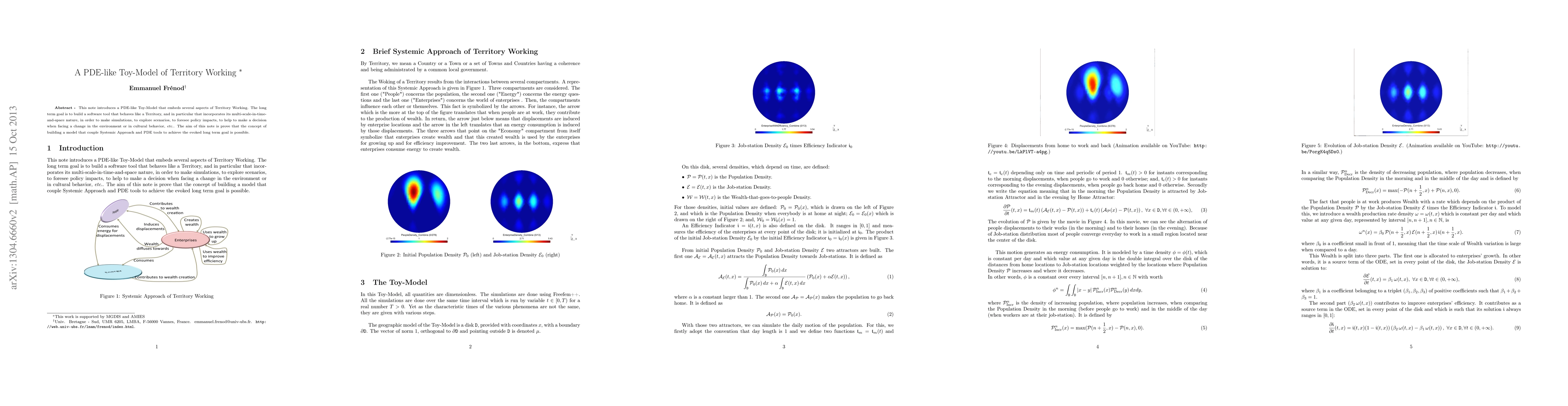 This note introduces a PDE-like Toy-Model that embeds several aspects of Territory Working. The long term goal is to build a software tool that behaves like a Territory, and in particular that incorporates its multi-scale-in-time-and-space nature, in order to make simulations, to explore scenarios, to foresee policy impacts, to help to make a decision when facing a change in the environment or in cultural behavior, {\it etc.}. The aim of this note is prove that the concept of building a model that couple Systemic Approach and PDE tools to achieve the evoked long term goal is possible.