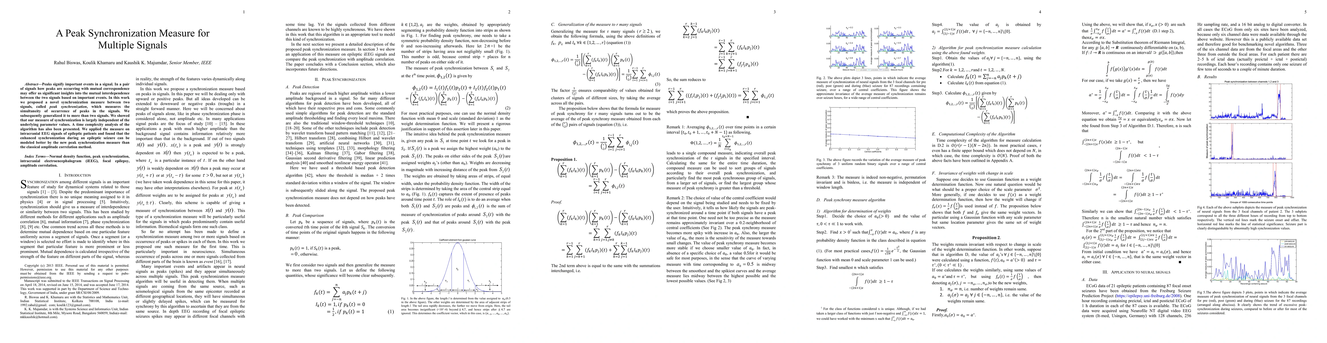 This paper proposes a novel synchronization measure called peak synchronization to assess the mutual correspondence of important events (peaks) in multiple signals, demonstrating its application and effectiveness on intracranial EEG signals from epileptic patients. The measure is shown to be robust to parameter variations and outperforms classical amplitude correlation methods in modeling enhanced synchronization during seizures.